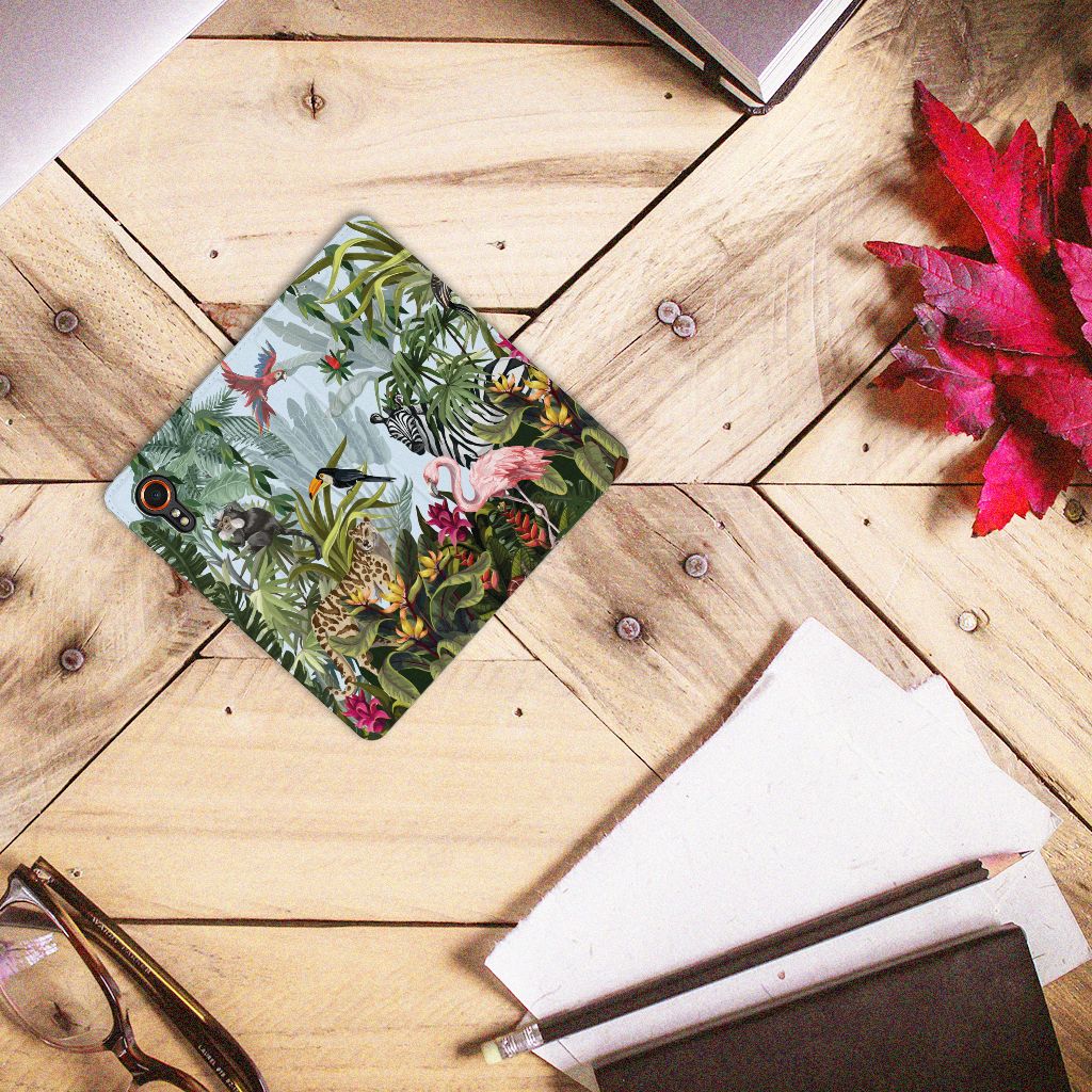 Ben je op zoek naar een tropische verrassing voor je Samsung Galaxy Xcover 7? Dan is dit hoesje in jungle stijl zeker iets voor jou! Met de verschillende soorten dieren waan je je even in de jungle, vind je ook niet? Dit design wordt geprint op een Hoesje maken waarin je een pasje kwijt kunt. Vouw het hoesje om en zet het horizontaal neer voor als je graag filmpjes op je Samsung Galaxy Xcover 7 kijkt. De magneten aan de binnenkant zorgen ervoor dat het hoesje dicht blijft in bijv. je tas. Bescherm jouw smartphone vandaag nog met dit stoere jungle design hoesje!