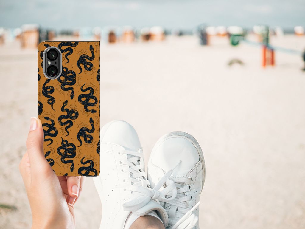 Slangen worden gekenmerkt door hun zeer lange en dunne lichaam en het ontbreken van ledematen. Wist je dat er ruim 3800 soorten slangen zijn? Waarvan maar 15% giftig is. Gelukkig is dit snakes design niet giftig! Hoe tof is dit design? 100% zeker dat jij opvalt met dit unieke snakes hoesje voor je Sony Xperia 5 V. Het design wordt geprint op een Hoesje maken waarin je een pasje kwijt kunt. Vouw het hoesje om en zet het horizontaal neer voor als je graag filmpjes op je Sony Xperia 5 V kijkt. De magneten aan de binnenkant zorgen ervoor dat het hoesje dicht blijft in bijv. je tas. Bescherm jouw smartphone vandaag nog met dit toffe snakes design hoesje!