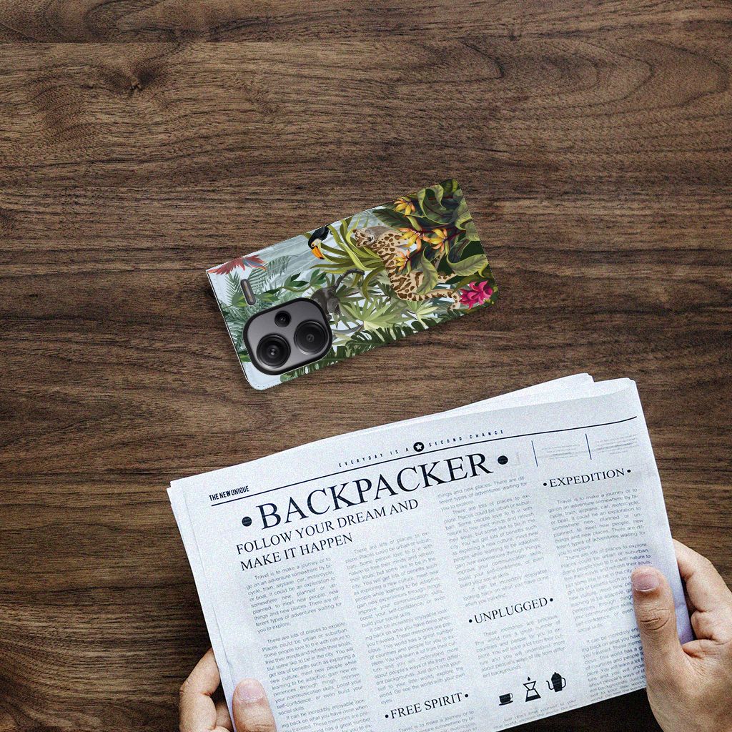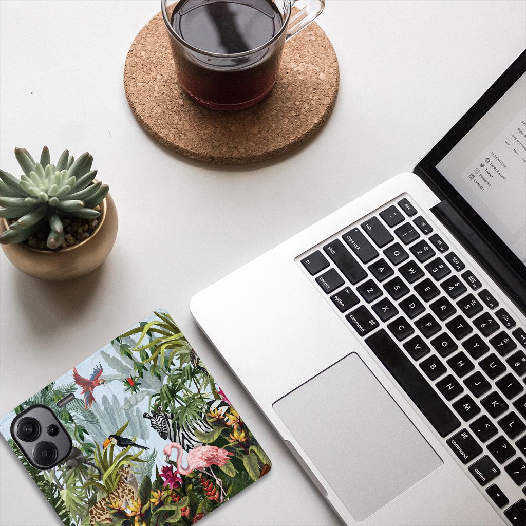 Ben je op zoek naar een tropische verrassing voor je Xiaomi Redmi Note 13 Pro Plus? Dan is dit hoesje in jungle stijl zeker iets voor jou! Met de verschillende soorten dieren waan je je even in de jungle, vind je ook niet? Dit design wordt geprint op een Hoesje maken waarin je een pasje kwijt kunt. Vouw het hoesje om en zet het horizontaal neer voor als je graag filmpjes op je Xiaomi Redmi Note 13 Pro Plus kijkt. De magneten aan de binnenkant zorgen ervoor dat het hoesje dicht blijft in bijv. je tas. Bescherm jouw smartphone vandaag nog met dit stoere jungle design hoesje!