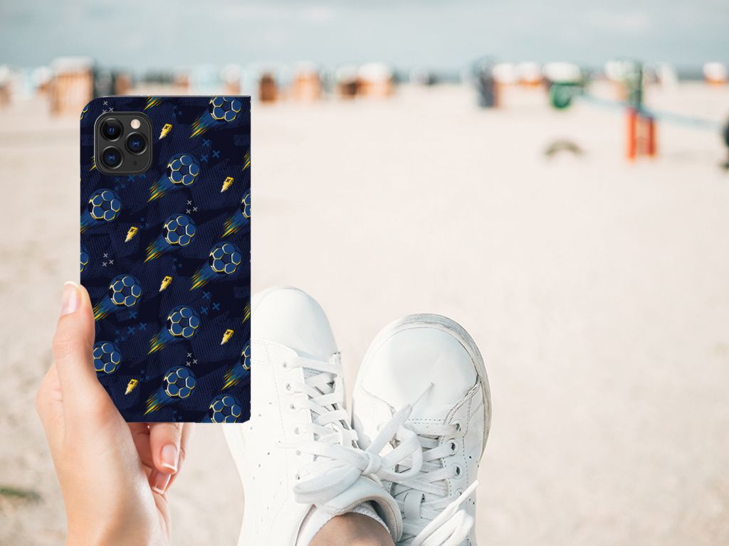 Wist je dat voetbal in 1865 is ontstaan in Nederland door wonende en werkende Britten in ons land? Tegenwoordig ademt Nederland voetbal en is het een van de meest beoefende sport. Iedereen kijkt en speelt het graag en daarom mag dit voetbal design hoesjes zeker niet ontbreken in onze collectie. Dit design wordt geprint op een Hoesje met Magneet speciaal op maat gemaakt voor de Apple iPhone 11 Pro Max. In dit hoesje kun je een pasje kwijt, super fijn toch? Vouw het hoesje om en zet het horizontaal neer voor als je graag filmpjes op je Apple iPhone 11 Pro Max kijkt. De magneten aan de binnenkant zorgen ervoor dat het hoesje dicht blijft in bijv. je tas. Bescherm jouw smartphone vandaag nog met dit toffe voetbal design hoesje!