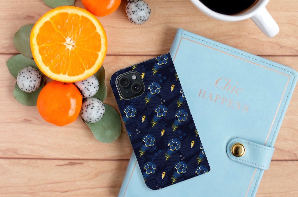 Wist je dat voetbal in 1865 is ontstaan in Nederland door wonende en werkende Britten in ons land? Tegenwoordig ademt Nederland voetbal en is het een van de meest beoefende sport. Iedereen kijkt en speelt het graag en daarom mag dit voetbal design hoesjes zeker niet ontbreken in onze collectie. Dit design wordt geprint op een Hoesje met Magneet speciaal op maat gemaakt voor de iPhone 15. In dit hoesje kun je een pasje kwijt, super fijn toch? Vouw het hoesje om en zet het horizontaal neer voor als je graag filmpjes op je iPhone 15 kijkt. De magneten aan de binnenkant zorgen ervoor dat het hoesje dicht blijft in bijv. je tas. Bescherm jouw smartphone vandaag nog met dit toffe voetbal design hoesje!