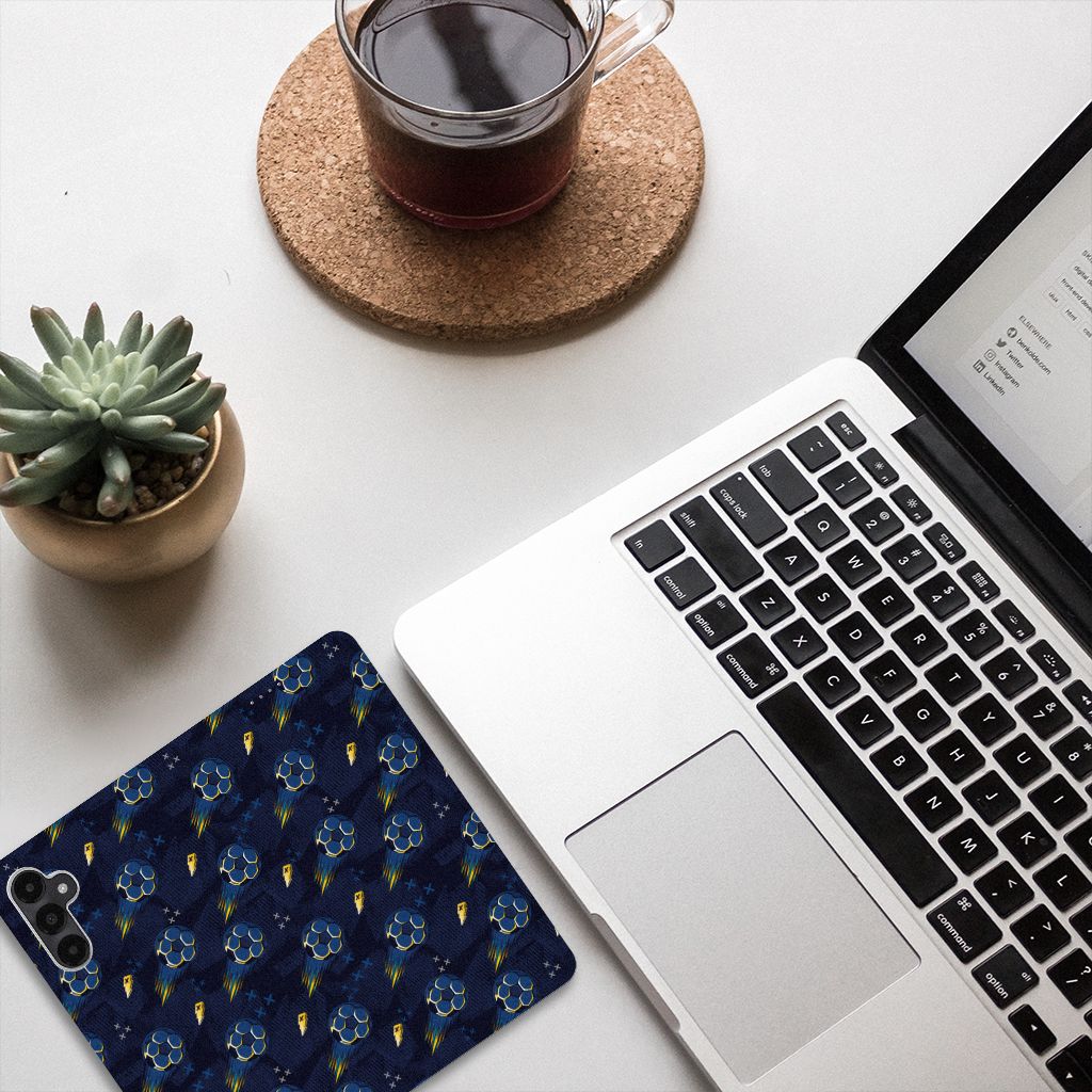 Wist je dat voetbal in 1865 is ontstaan in Nederland door wonende en werkende Britten in ons land? Tegenwoordig ademt Nederland voetbal en is het een van de meest beoefende sport. Iedereen kijkt en speelt het graag en daarom mag dit voetbal design hoesjes zeker niet ontbreken in onze collectie. Dit design wordt geprint op een Hoesje met Magneet speciaal op maat gemaakt voor de Samsung Galaxy A05s. In dit hoesje kun je een pasje kwijt, super fijn toch? Vouw het hoesje om en zet het horizontaal neer voor als je graag filmpjes op je Samsung Galaxy A05s kijkt. De magneten aan de binnenkant zorgen ervoor dat het hoesje dicht blijft in bijv. je tas. Bescherm jouw smartphone vandaag nog met dit toffe voetbal design hoesje!