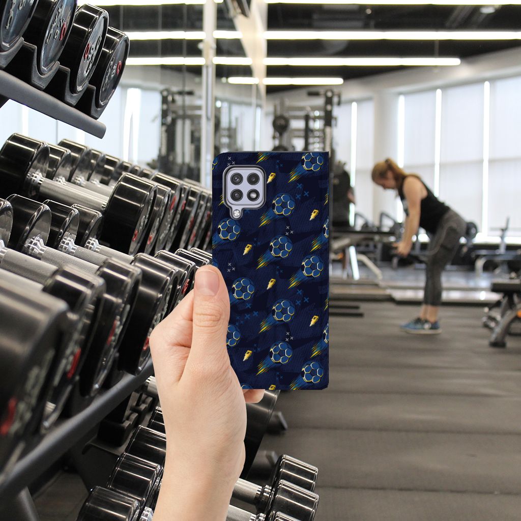 Wist je dat voetbal in 1865 is ontstaan in Nederland door wonende en werkende Britten in ons land? Tegenwoordig ademt Nederland voetbal en is het een van de meest beoefende sport. Iedereen kijkt en speelt het graag en daarom mag dit voetbal design hoesjes zeker niet ontbreken in onze collectie. Dit design wordt geprint op een Hoesje met Magneet speciaal op maat gemaakt voor de Samsung Galaxy A22 4G | M22. In dit hoesje kun je een pasje kwijt, super fijn toch? Vouw het hoesje om en zet het horizontaal neer voor als je graag filmpjes op je Samsung Galaxy A22 4G | M22 kijkt. De magneten aan de binnenkant zorgen ervoor dat het hoesje dicht blijft in bijv. je tas. Bescherm jouw smartphone vandaag nog met dit toffe voetbal design hoesje!
