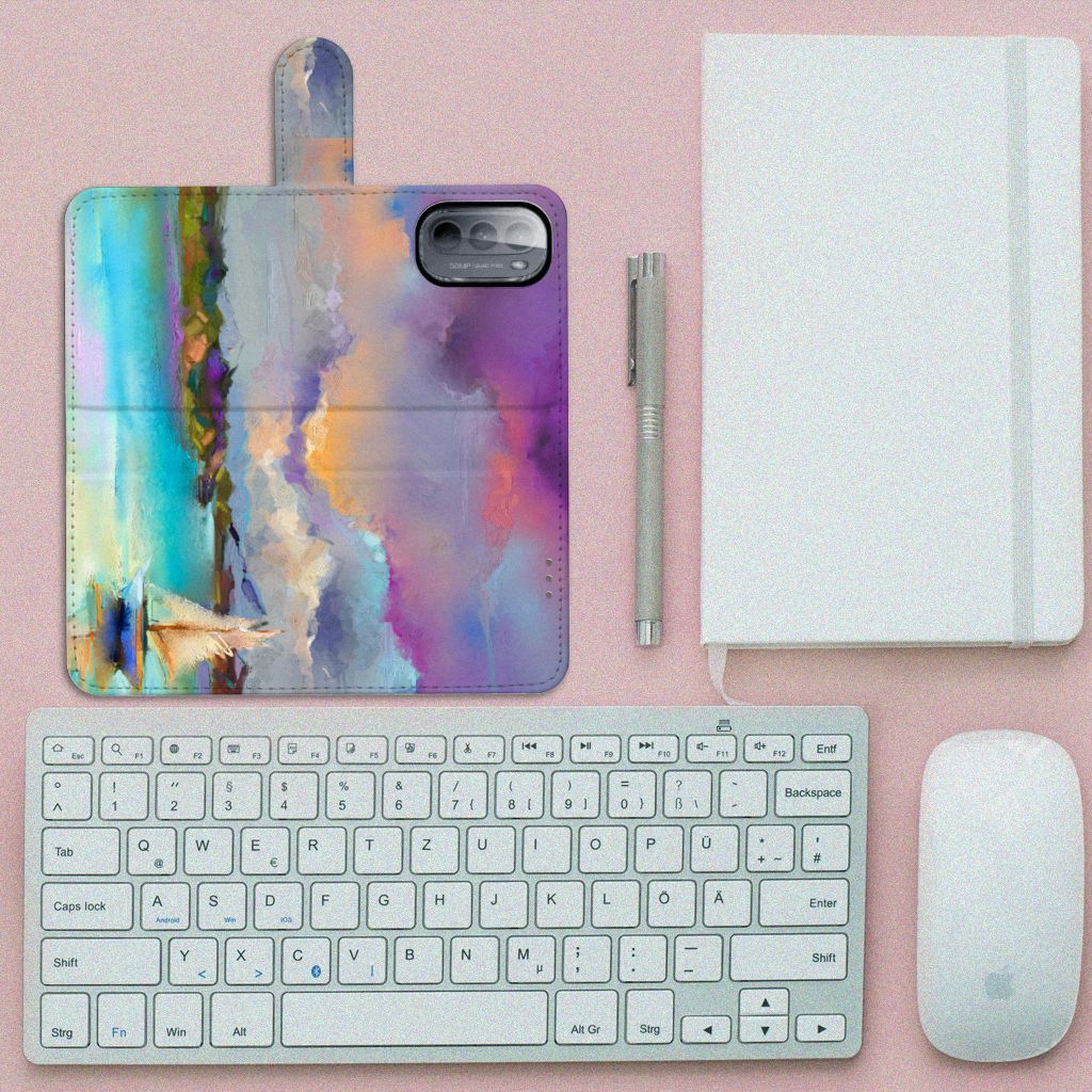 Het design op dit artistieke hoesje met de verschillende tinten van paars, blauw en groen zou je zo zelf op de muur kunnen hangen. Het design laat een boot zien maar dan is hij wat abstracter geverfd met door elkaar lopende kleuren. Als jij houdt van kunst dan is dit artistieke hoesje wat voor jou. Wat het ontwerp extra mooi maakt is dat de gehele bookcase is bedrukt inclusief het magnetische lipje wat als sluiting wordt gebruikt. Het andere voordeel van een bookcase is dat jouw telefoon aan alle kanten is beschermd, ook als je hem op zijn scherm laat vallen is er niks aan de hand en wordt jouw telefoon goed beschermd door het kunstleer wat eromheen zit. Het magnetische lipje zorgt er dan weer voor dat het Motorola Moto G31 | G41 Hoesje op zijn plek blijft zitten en dat jouw telefoon aan alle kanten beschermd blijft.