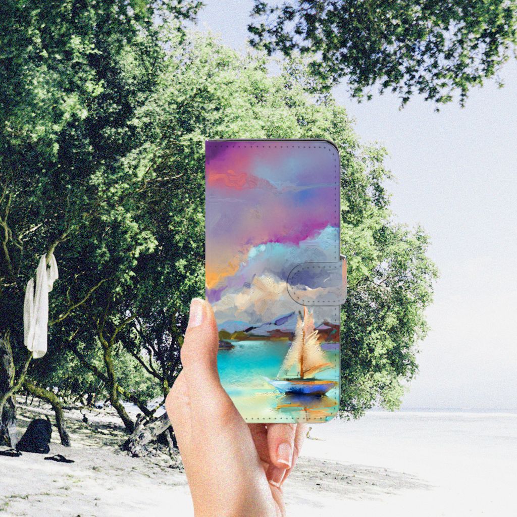 Het design op dit artistieke hoesje met de verschillende tinten van paars, blauw en groen zou je zo zelf op de muur kunnen hangen. Het design laat een boot zien maar dan is hij wat abstracter geverfd met door elkaar lopende kleuren. Als jij houdt van kunst dan is dit artistieke hoesje wat voor jou. Wat het ontwerp extra mooi maakt is dat de gehele bookcase is bedrukt inclusief het magnetische lipje wat als sluiting wordt gebruikt. Het andere voordeel van een bookcase is dat jouw telefoon aan alle kanten is beschermd, ook als je hem op zijn scherm laat vallen is er niks aan de hand en wordt jouw telefoon goed beschermd door het kunstleer wat eromheen zit. Het magnetische lipje zorgt er dan weer voor dat het Motorola Moto G32 Hoesje op zijn plek blijft zitten en dat jouw telefoon aan alle kanten beschermd blijft.