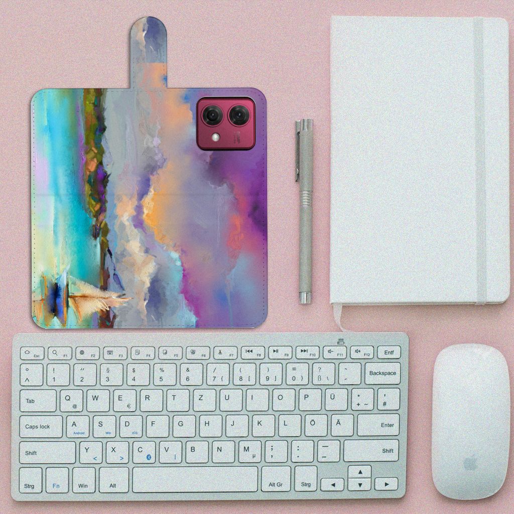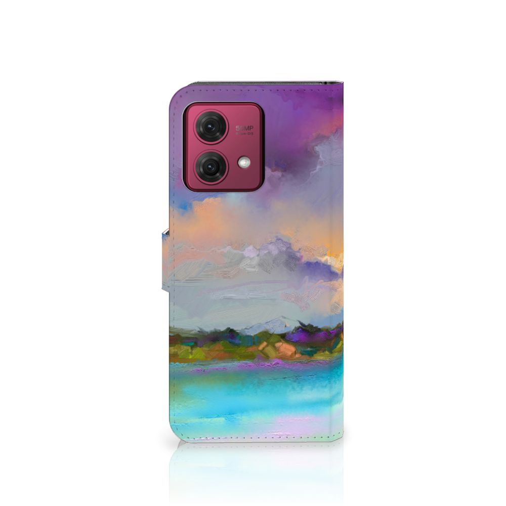 Het design op dit artistieke hoesje met de verschillende tinten van paars, blauw en groen zou je zo zelf op de muur kunnen hangen. Het design laat een boot zien maar dan is hij wat abstracter geverfd met door elkaar lopende kleuren. Als jij houdt van kunst dan is dit artistieke hoesje wat voor jou. Wat het ontwerp extra mooi maakt is dat de gehele bookcase is bedrukt inclusief het magnetische lipje wat als sluiting wordt gebruikt. Het andere voordeel van een bookcase is dat jouw telefoon aan alle kanten is beschermd, ook als je hem op zijn scherm laat vallen is er niks aan de hand en wordt jouw telefoon goed beschermd door het kunstleer wat eromheen zit. Het magnetische lipje zorgt er dan weer voor dat het Motorola Moto G84 Hoesje op zijn plek blijft zitten en dat jouw telefoon aan alle kanten beschermd blijft.