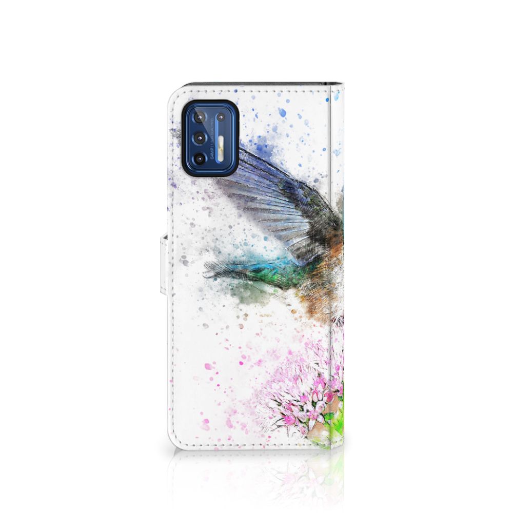 Dit artistieke Hoesje is met veel plezier speciaal voor jou ontworpen. De afbeelding van een kolibrie die neerstrijkt op een bloem die veel stuifmeel afgeeft zorgt voor een sfeervol design. Door het toevoegen van verschillende kleuren zie je op dit Motorola Moto G9 Plus hoesje een waar kleurenspektakel. Bovendien houdt dit kleurenspektakel aan de voorkant niet op, op de achterkant van het hoesje zie je de rest van de kolibrie. Zelfs het magnetische lipje is onderdeel van het design. Zo heb je dus een hoesje wat behalve mooi ook heel handig is, er is namelijk ruimte voor drie pasjes in dit design hoesje. Je kunt al jouw belangrijke bezittingen bij je dragen, waardoor je ze ook een stuk minder snel kwijtraakt.