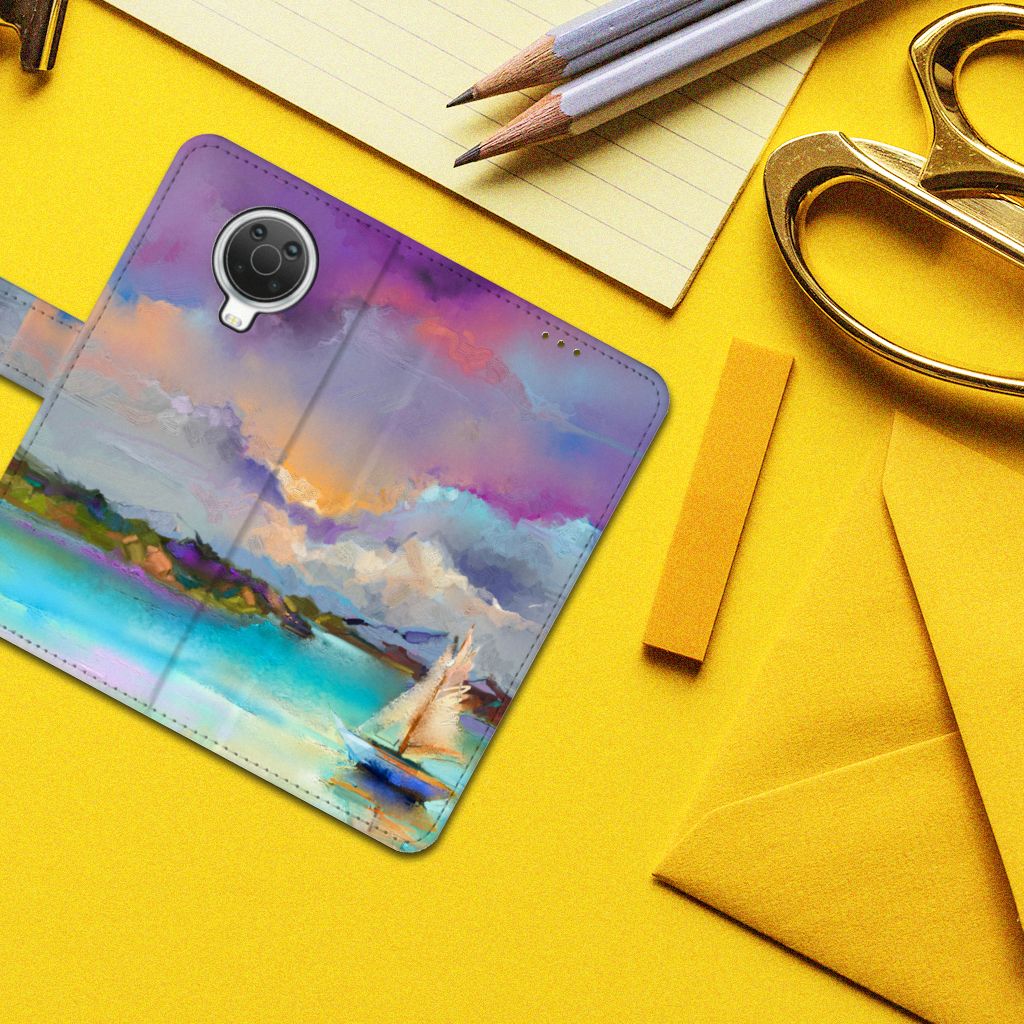 Het design op dit artistieke hoesje met de verschillende tinten van paars, blauw en groen zou je zo zelf op de muur kunnen hangen. Het design laat een boot zien maar dan is hij wat abstracter geverfd met door elkaar lopende kleuren. Als jij houdt van kunst dan is dit artistieke hoesje wat voor jou. Wat het ontwerp extra mooi maakt is dat de gehele bookcase is bedrukt inclusief het magnetische lipje wat als sluiting wordt gebruikt. Het andere voordeel van een bookcase is dat jouw telefoon aan alle kanten is beschermd, ook als je hem op zijn scherm laat vallen is er niks aan de hand en wordt jouw telefoon goed beschermd door het kunstleer wat eromheen zit. Het magnetische lipje zorgt er dan weer voor dat het Nokia G10 | G20 Hoesje op zijn plek blijft zitten en dat jouw telefoon aan alle kanten beschermd blijft.