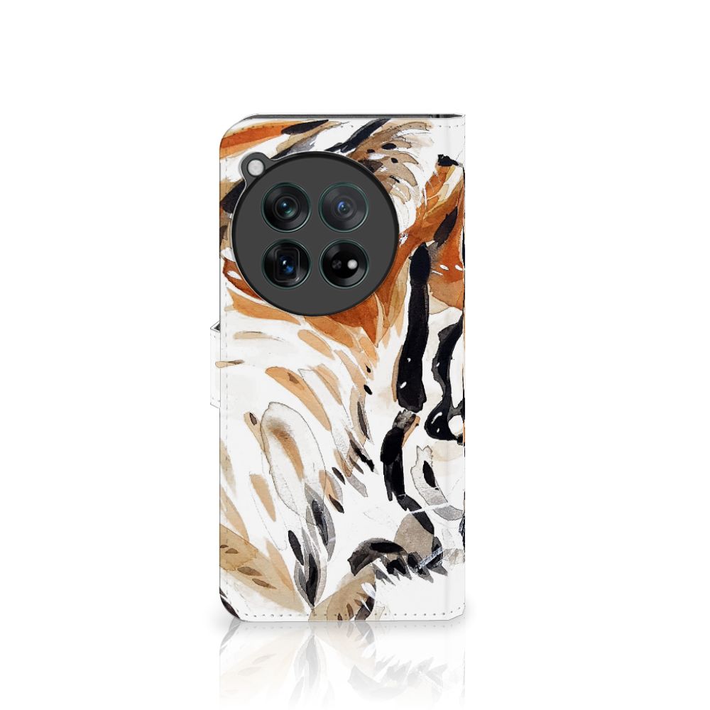 Hoesje OnePlus 12 met magnetische sluiting Watercolor Tiger