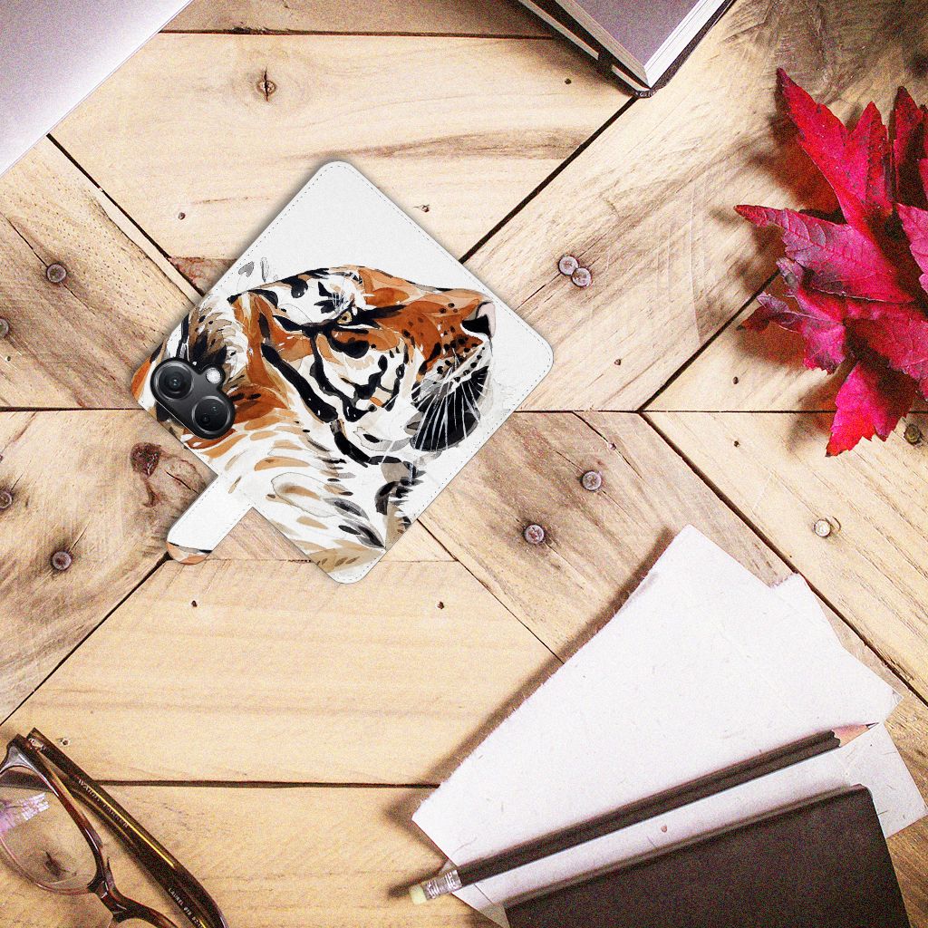 Hoesje OnePlus Nord CE 3 met magnetische sluiting Watercolor Tiger