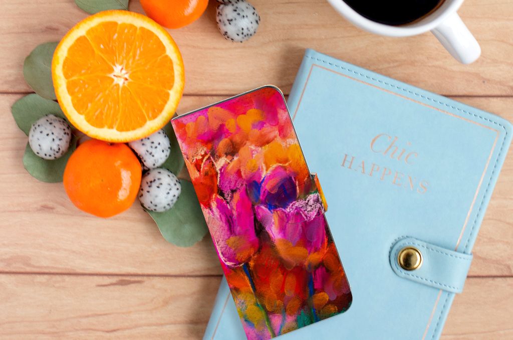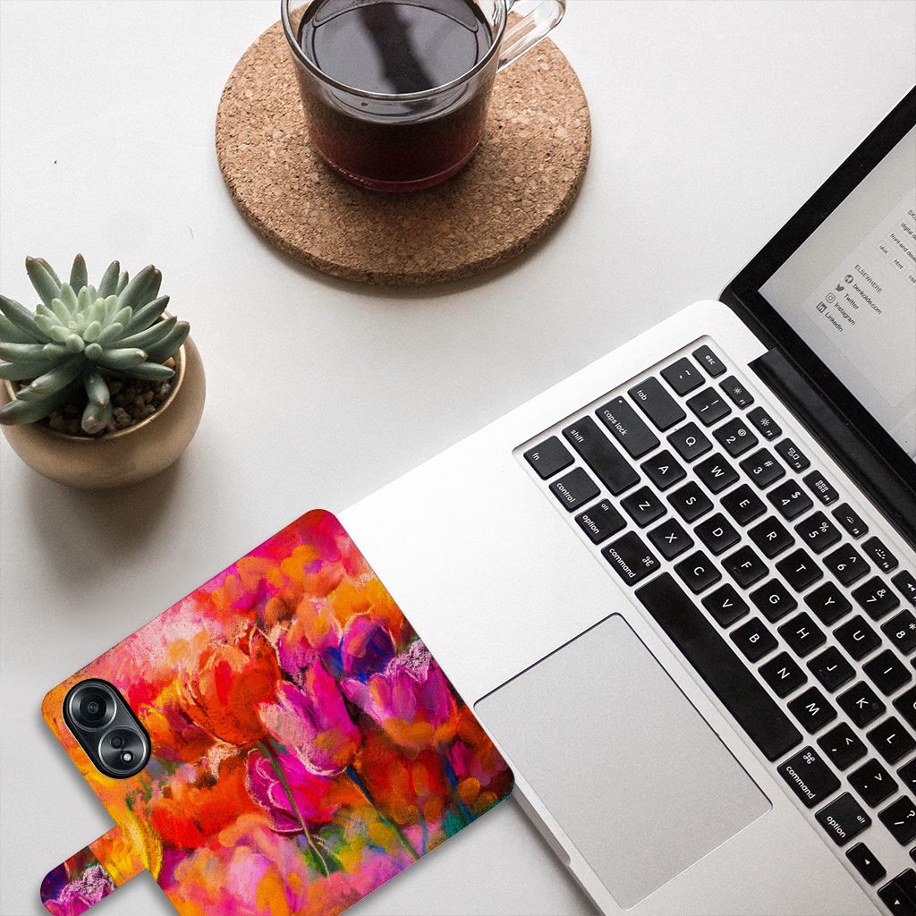 Hoesje OPPO A58 4G met ruimte voor 3 pasjes Tulips