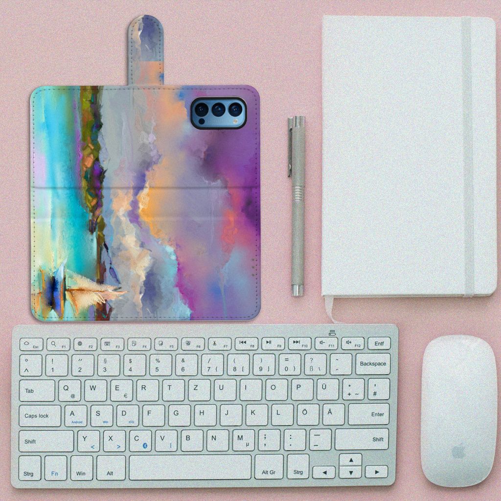 Het design op dit artistieke hoesje met de verschillende tinten van paars, blauw en groen zou je zo zelf op de muur kunnen hangen. Het design laat een boot zien maar dan is hij wat abstracter geverfd met door elkaar lopende kleuren. Als jij houdt van kunst dan is dit artistieke hoesje wat voor jou. Wat het ontwerp extra mooi maakt is dat de gehele bookcase is bedrukt inclusief het magnetische lipje wat als sluiting wordt gebruikt. Het andere voordeel van een bookcase is dat jouw telefoon aan alle kanten is beschermd, ook als je hem op zijn scherm laat vallen is er niks aan de hand en wordt jouw telefoon goed beschermd door het kunstleer wat eromheen zit. Het magnetische lipje zorgt er dan weer voor dat het OPPO Reno 4 Pro 5G Hoesje op zijn plek blijft zitten en dat jouw telefoon aan alle kanten beschermd blijft.