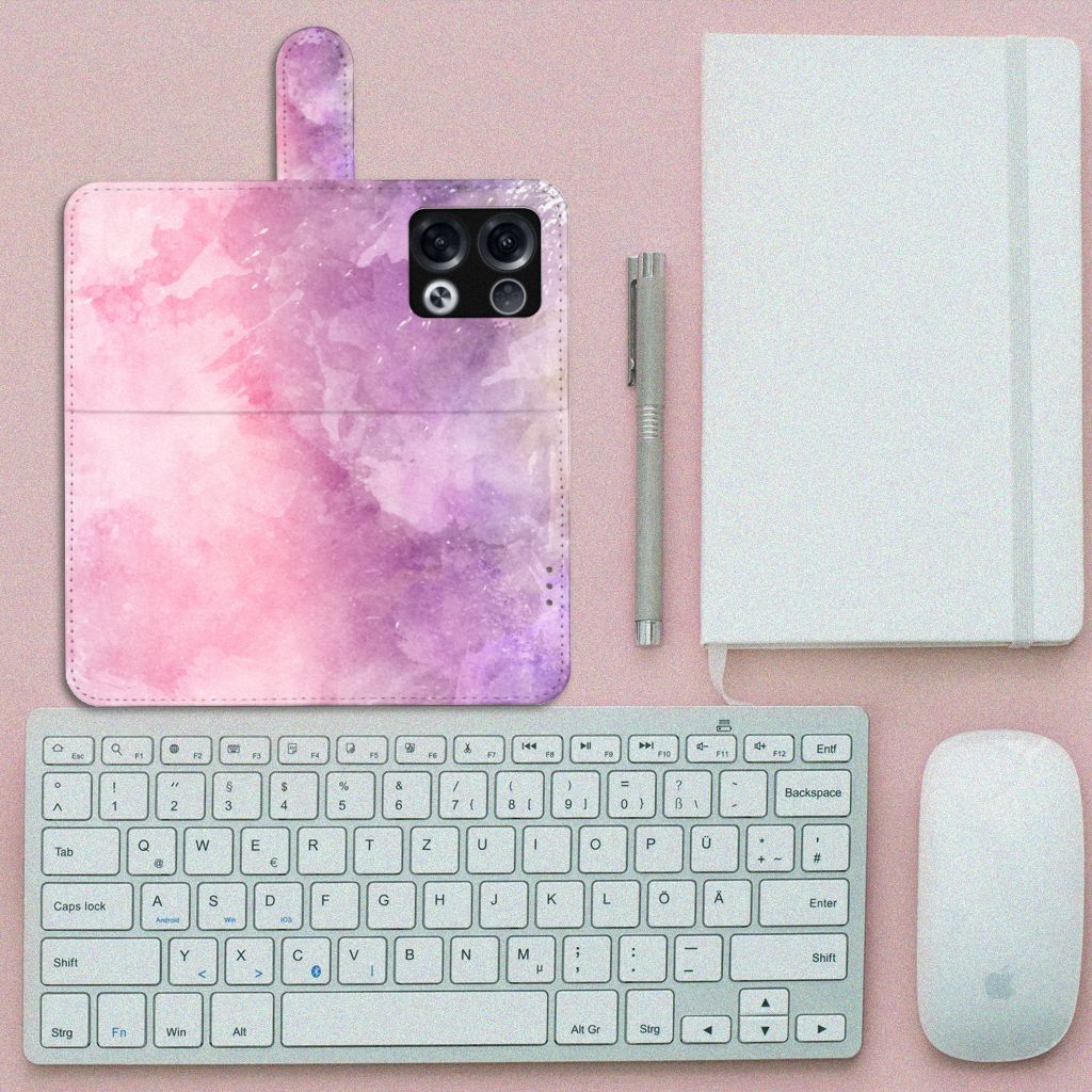 Hoesje OPPO Reno8 Pro bookcase model Pink Purple Paint
