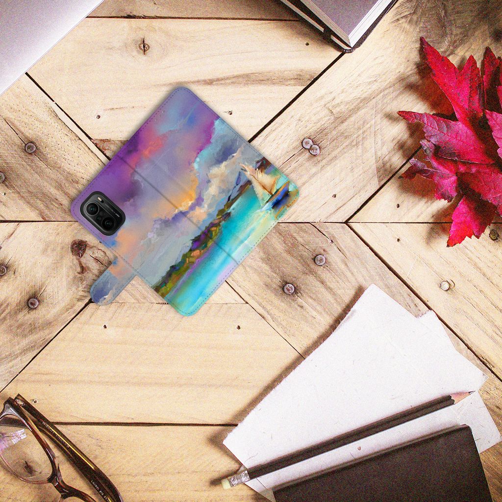 Het design op dit artistieke hoesje met de verschillende tinten van paars, blauw en groen zou je zo zelf op de muur kunnen hangen. Het design laat een boot zien maar dan is hij wat abstracter geverfd met door elkaar lopende kleuren. Als jij houdt van kunst dan is dit artistieke hoesje wat voor jou. Wat het ontwerp extra mooi maakt is dat de gehele bookcase is bedrukt inclusief het magnetische lipje wat als sluiting wordt gebruikt. Het andere voordeel van een bookcase is dat jouw telefoon aan alle kanten is beschermd, ook als je hem op zijn scherm laat vallen is er niks aan de hand en wordt jouw telefoon goed beschermd door het kunstleer wat eromheen zit. Het magnetische lipje zorgt er dan weer voor dat het Poco F3 | Xiaomi Mi 11i Hoesje op zijn plek blijft zitten en dat jouw telefoon aan alle kanten beschermd blijft.