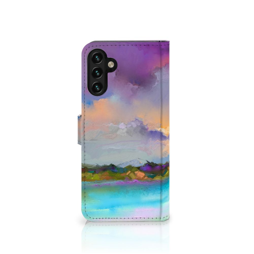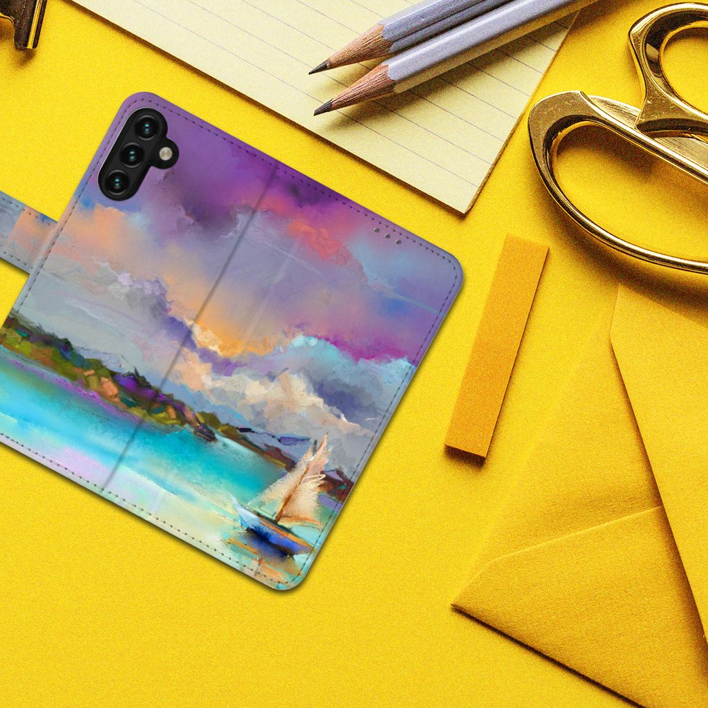 Het design op dit artistieke hoesje met de verschillende tinten van paars, blauw en groen zou je zo zelf op de muur kunnen hangen. Het design laat een boot zien maar dan is hij wat abstracter geverfd met door elkaar lopende kleuren. Als jij houdt van kunst dan is dit artistieke hoesje wat voor jou. Wat het ontwerp extra mooi maakt is dat de gehele bookcase is bedrukt inclusief het magnetische lipje wat als sluiting wordt gebruikt. Het andere voordeel van een bookcase is dat jouw telefoon aan alle kanten is beschermd, ook als je hem op zijn scherm laat vallen is er niks aan de hand en wordt jouw telefoon goed beschermd door het kunstleer wat eromheen zit. Het magnetische lipje zorgt er dan weer voor dat het Samsung Galaxy A04s | Samsung Galaxy A13 5G Hoesje op zijn plek blijft zitten en dat jouw telefoon aan alle kanten beschermd blijft.