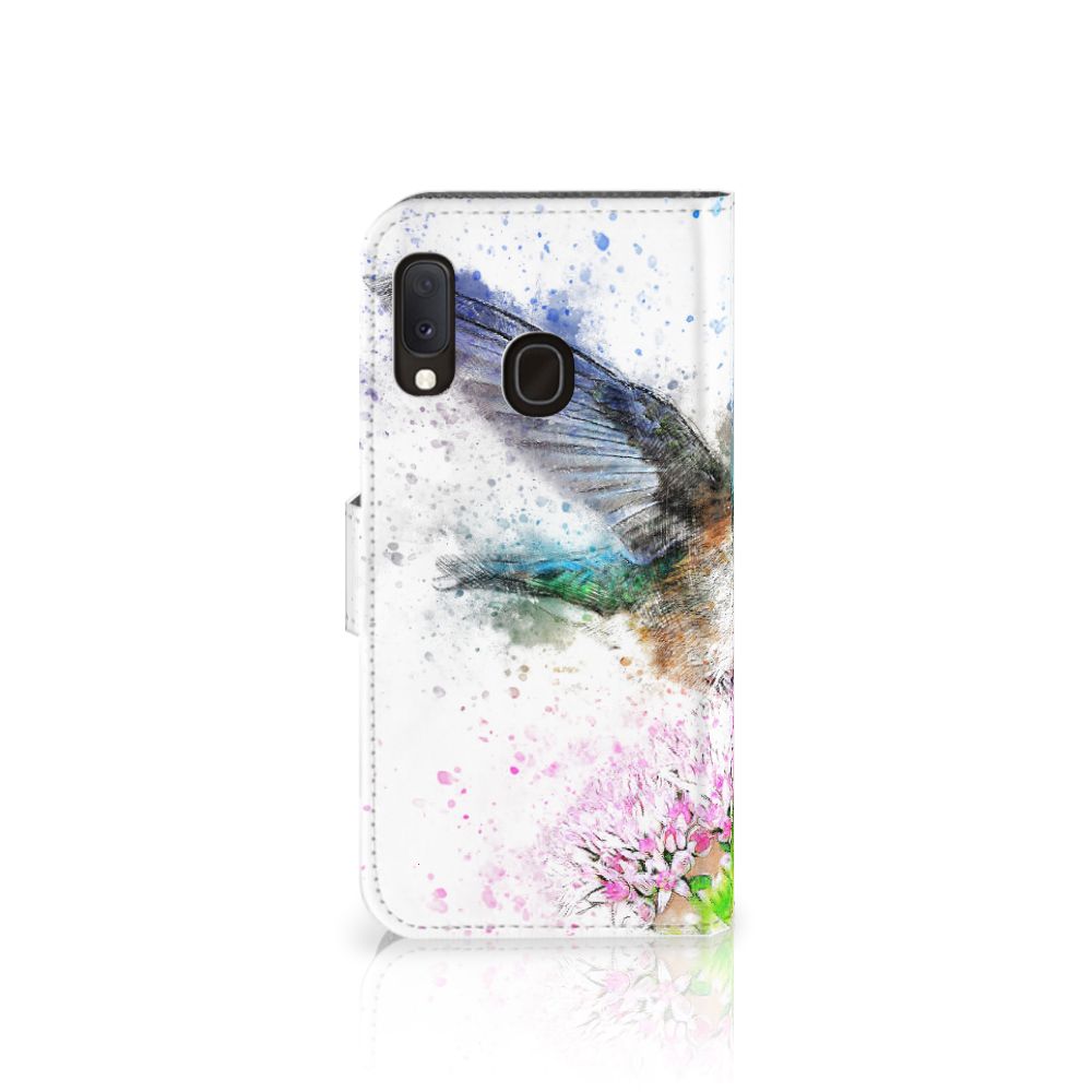 Dit artistieke Hoesje is met veel plezier speciaal voor jou ontworpen. De afbeelding van een kolibrie die neerstrijkt op een bloem die veel stuifmeel afgeeft zorgt voor een sfeervol design. Door het toevoegen van verschillende kleuren zie je op dit Samsung Galaxy A20e hoesje een waar kleurenspektakel. Bovendien houdt dit kleurenspektakel aan de voorkant niet op, op de achterkant van het hoesje zie je de rest van de kolibrie. Zelfs het magnetische lipje is onderdeel van het design. Zo heb je dus een hoesje wat behalve mooi ook heel handig is, er is namelijk ruimte voor drie pasjes in dit design hoesje. Je kunt al jouw belangrijke bezittingen bij je dragen, waardoor je ze ook een stuk minder snel kwijtraakt.
