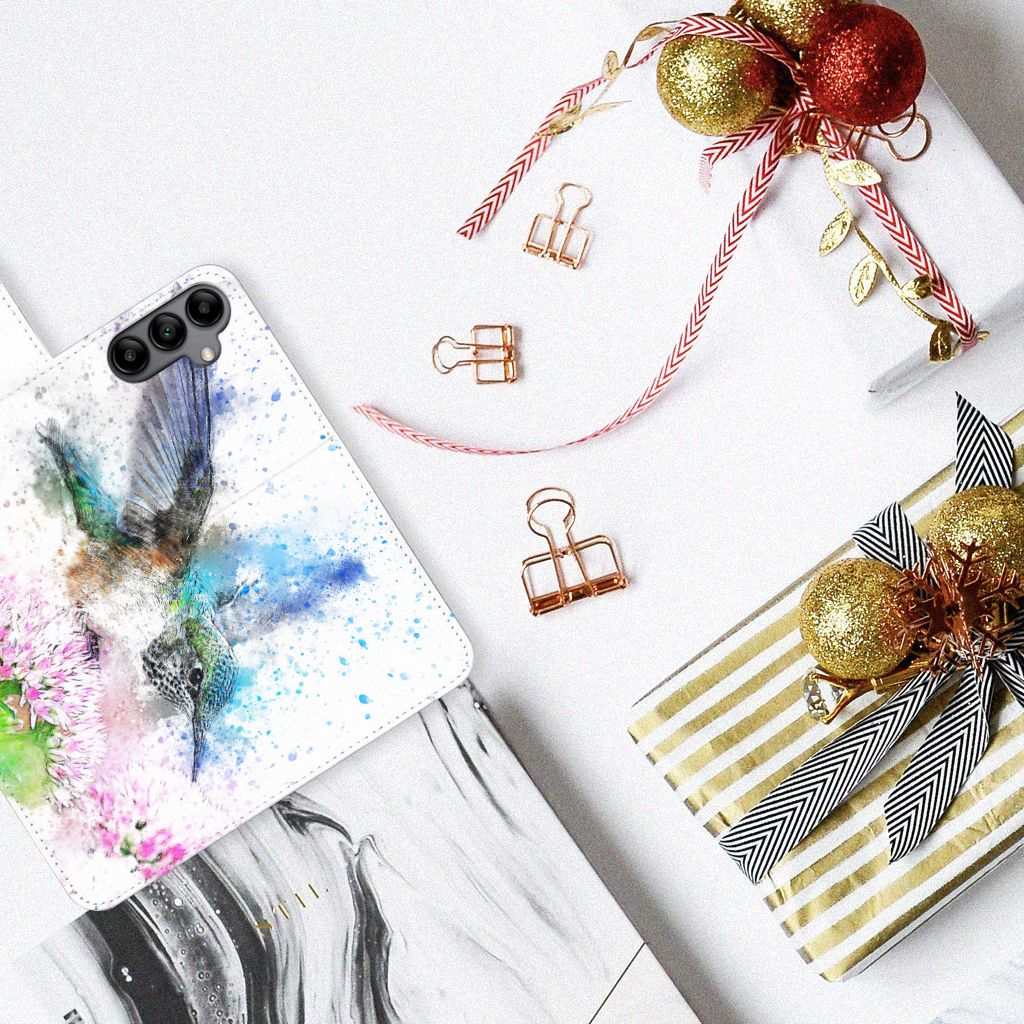 Dit artistieke Hoesje is met veel plezier speciaal voor jou ontworpen. De afbeelding van een kolibrie die neerstrijkt op een bloem die veel stuifmeel afgeeft zorgt voor een sfeervol design. Door het toevoegen van verschillende kleuren zie je op dit Samsung Galaxy A34 hoesje een waar kleurenspektakel. Bovendien houdt dit kleurenspektakel aan de voorkant niet op, op de achterkant van het hoesje zie je de rest van de kolibrie. Zelfs het magnetische lipje is onderdeel van het design. Zo heb je dus een hoesje wat behalve mooi ook heel handig is, er is namelijk ruimte voor drie pasjes in dit design hoesje. Je kunt al jouw belangrijke bezittingen bij je dragen, waardoor je ze ook een stuk minder snel kwijtraakt.