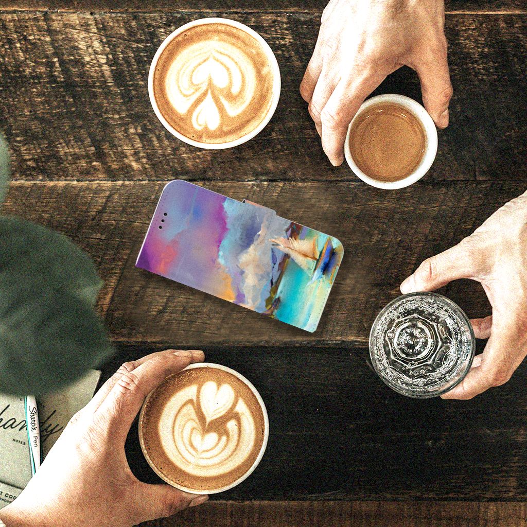 Het design op dit artistieke hoesje met de verschillende tinten van paars, blauw en groen zou je zo zelf op de muur kunnen hangen. Het design laat een boot zien maar dan is hij wat abstracter geverfd met door elkaar lopende kleuren. Als jij houdt van kunst dan is dit artistieke hoesje wat voor jou. Wat het ontwerp extra mooi maakt is dat de gehele bookcase is bedrukt inclusief het magnetische lipje wat als sluiting wordt gebruikt. Het andere voordeel van een bookcase is dat jouw telefoon aan alle kanten is beschermd, ook als je hem op zijn scherm laat vallen is er niks aan de hand en wordt jouw telefoon goed beschermd door het kunstleer wat eromheen zit. Het magnetische lipje zorgt er dan weer voor dat het Samsung Galaxy A5 2017 Hoesje op zijn plek blijft zitten en dat jouw telefoon aan alle kanten beschermd blijft.
