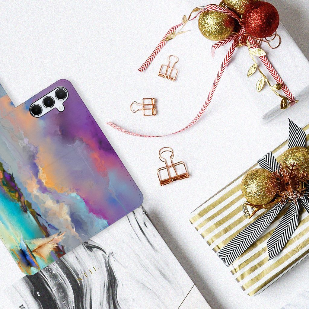 Het design op dit artistieke hoesje met de verschillende tinten van paars, blauw en groen zou je zo zelf op de muur kunnen hangen. Het design laat een boot zien maar dan is hij wat abstracter geverfd met door elkaar lopende kleuren. Als jij houdt van kunst dan is dit artistieke hoesje wat voor jou. Wat het ontwerp extra mooi maakt is dat de gehele bookcase is bedrukt inclusief het magnetische lipje wat als sluiting wordt gebruikt. Het andere voordeel van een bookcase is dat jouw telefoon aan alle kanten is beschermd, ook als je hem op zijn scherm laat vallen is er niks aan de hand en wordt jouw telefoon goed beschermd door het kunstleer wat eromheen zit. Het magnetische lipje zorgt er dan weer voor dat het Samsung Galaxy A55 Hoesje op zijn plek blijft zitten en dat jouw telefoon aan alle kanten beschermd blijft.