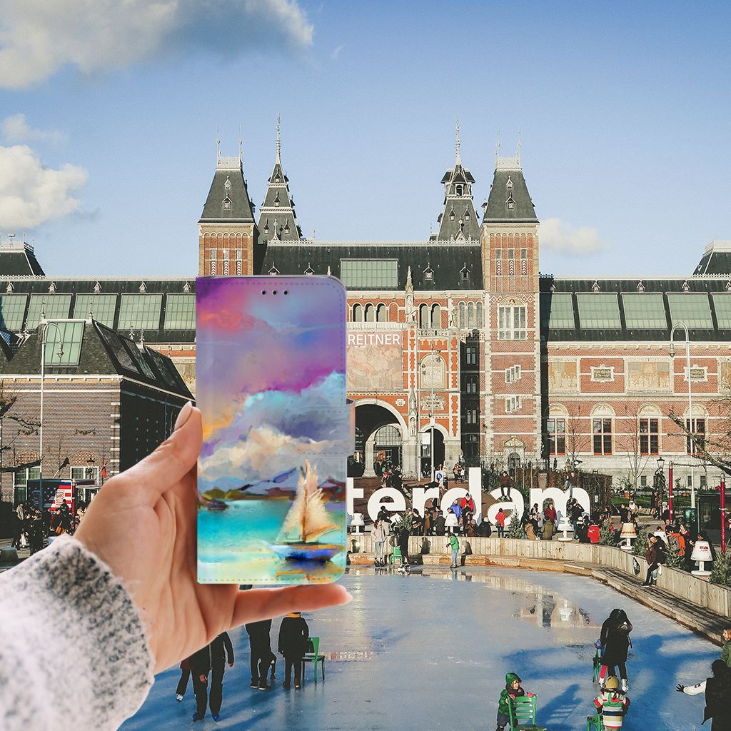 Het design op dit artistieke hoesje met de verschillende tinten van paars, blauw en groen zou je zo zelf op de muur kunnen hangen. Het design laat een boot zien maar dan is hij wat abstracter geverfd met door elkaar lopende kleuren. Als jij houdt van kunst dan is dit artistieke hoesje wat voor jou. Wat het ontwerp extra mooi maakt is dat de gehele bookcase is bedrukt inclusief het magnetische lipje wat als sluiting wordt gebruikt. Het andere voordeel van een bookcase is dat jouw telefoon aan alle kanten is beschermd, ook als je hem op zijn scherm laat vallen is er niks aan de hand en wordt jouw telefoon goed beschermd door het kunstleer wat eromheen zit. Het magnetische lipje zorgt er dan weer voor dat het Samsung Galaxy J6 2018 Hoesje op zijn plek blijft zitten en dat jouw telefoon aan alle kanten beschermd blijft.