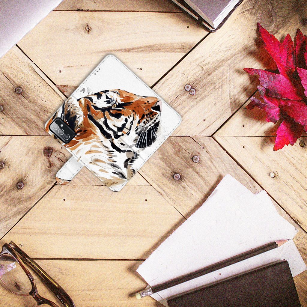 Hoesje Samsung Galaxy M52 met magnetische sluiting Watercolor Tiger