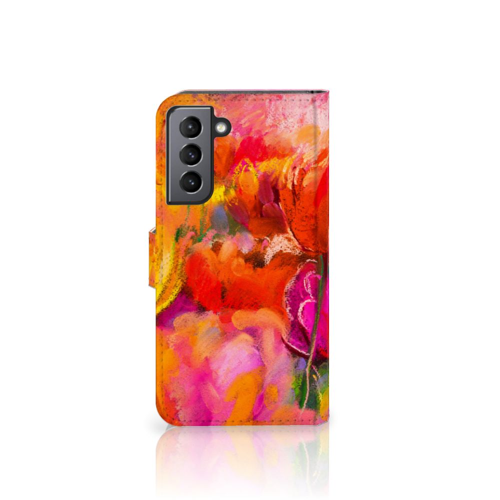 Hoesje Samsung Galaxy S21 FE met ruimte voor 3 pasjes Tulips