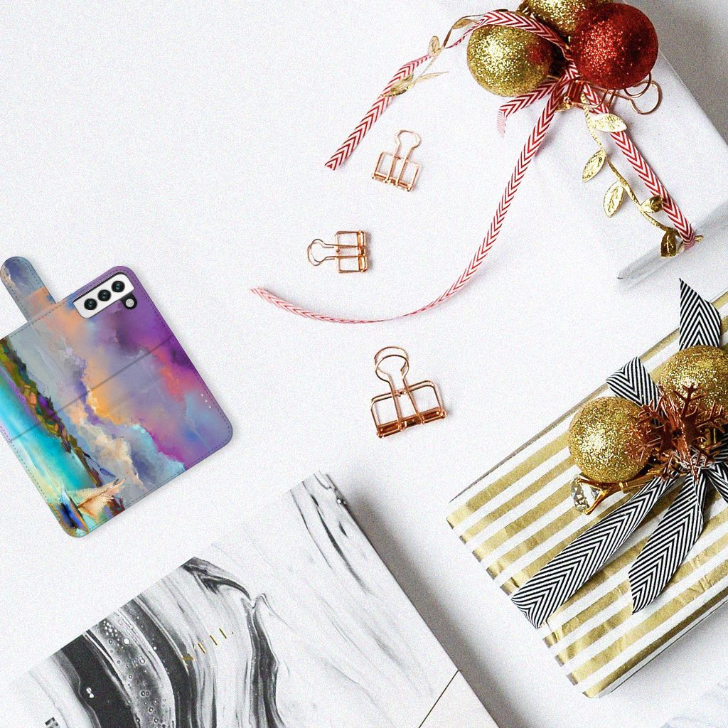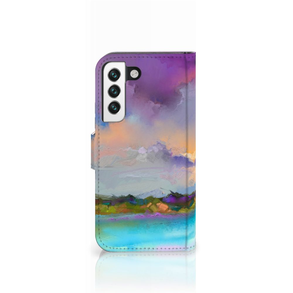 Het design op dit artistieke hoesje met de verschillende tinten van paars, blauw en groen zou je zo zelf op de muur kunnen hangen. Het design laat een boot zien maar dan is hij wat abstracter geverfd met door elkaar lopende kleuren. Als jij houdt van kunst dan is dit artistieke hoesje wat voor jou. Wat het ontwerp extra mooi maakt is dat de gehele bookcase is bedrukt inclusief het magnetische lipje wat als sluiting wordt gebruikt. Het andere voordeel van een bookcase is dat jouw telefoon aan alle kanten is beschermd, ook als je hem op zijn scherm laat vallen is er niks aan de hand en wordt jouw telefoon goed beschermd door het kunstleer wat eromheen zit. Het magnetische lipje zorgt er dan weer voor dat het Samsung Galaxy S22 Hoesje op zijn plek blijft zitten en dat jouw telefoon aan alle kanten beschermd blijft.
