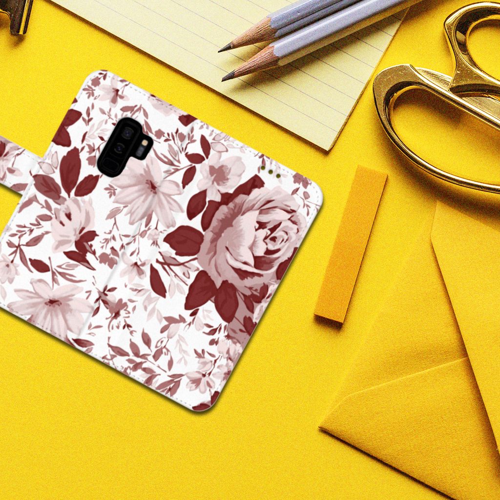 Hoesje Samsung Galaxy S9 Plus met ruimte voor 3 pasjes Watercolor Flowers
