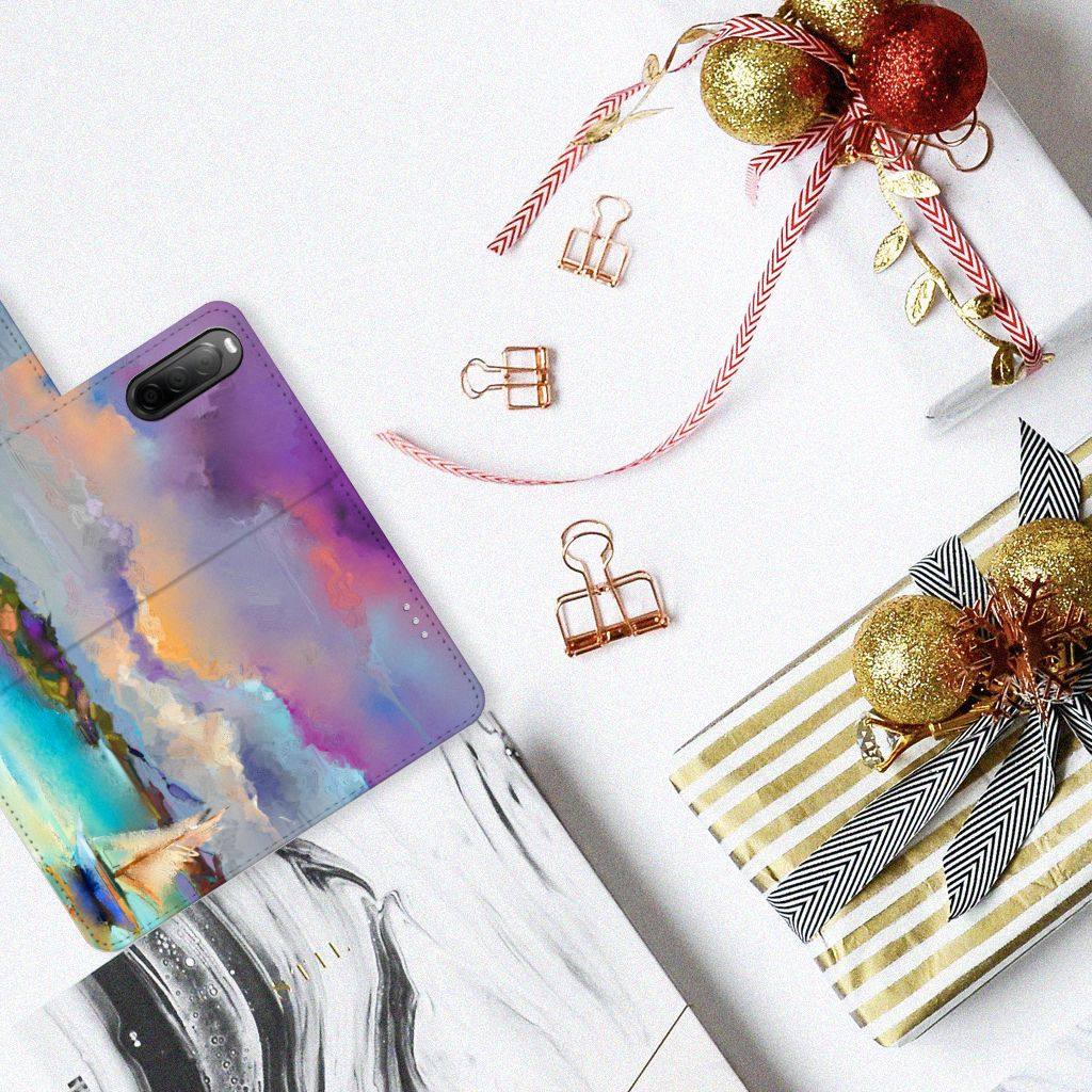 Het design op dit artistieke hoesje met de verschillende tinten van paars, blauw en groen zou je zo zelf op de muur kunnen hangen. Het design laat een boot zien maar dan is hij wat abstracter geverfd met door elkaar lopende kleuren. Als jij houdt van kunst dan is dit artistieke hoesje wat voor jou. Wat het ontwerp extra mooi maakt is dat de gehele bookcase is bedrukt inclusief het magnetische lipje wat als sluiting wordt gebruikt. Het andere voordeel van een bookcase is dat jouw telefoon aan alle kanten is beschermd, ook als je hem op zijn scherm laat vallen is er niks aan de hand en wordt jouw telefoon goed beschermd door het kunstleer wat eromheen zit. Het magnetische lipje zorgt er dan weer voor dat het Sony Xperia 10 IV Hoesje op zijn plek blijft zitten en dat jouw telefoon aan alle kanten beschermd blijft.