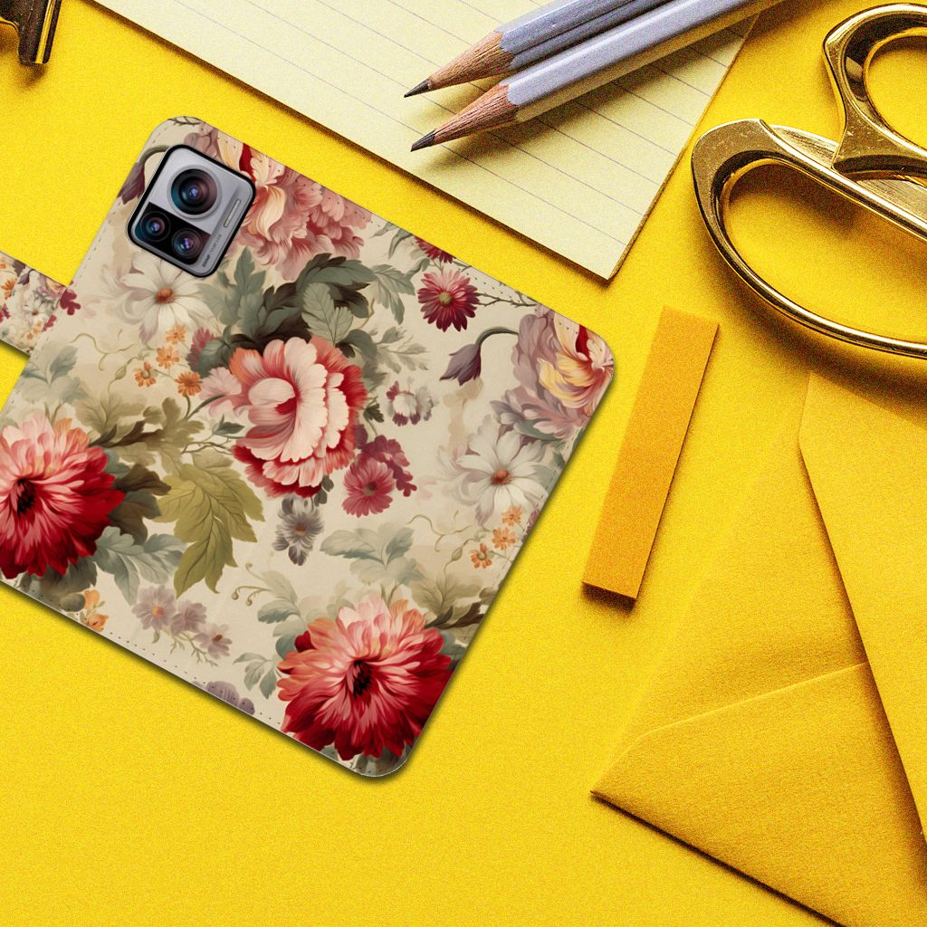 Wij (vrouwen) krijgen geen genoeg van chocolade, schoenen en bloemen. Daarom mag dit prachtige bloemen hoesje zeker niet ontbreken in onze collectie design hoesjes. Wij krijgen hier romantische vibes van, jij ook? Dit design wordt geprint op een Hoesje speciaal op maat gemaakt voor de Motorola Edge 30 Ultra. In dit hoesje kun je drie pasjes kwijt, super handig toch? Het hoesje wordt afgesloten met een sluit lipje, waardoor jouw telefoon altijd goed beschermd is. Bescherm je Motorola Edge 30 Ultra vandaag nog dit romantische bloemen hoesje!