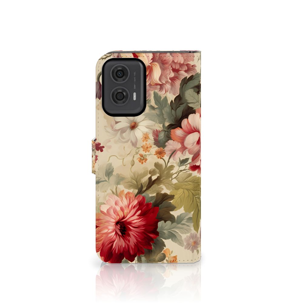 Wij (vrouwen) krijgen geen genoeg van chocolade, schoenen en bloemen. Daarom mag dit prachtige bloemen hoesje zeker niet ontbreken in onze collectie design hoesjes. Wij krijgen hier romantische vibes van, jij ook? Dit design wordt geprint op een Hoesje speciaal op maat gemaakt voor de Motorola Moto G24 | G04 | G24 Power. In dit hoesje kun je drie pasjes kwijt, super handig toch? Het hoesje wordt afgesloten met een sluit lipje, waardoor jouw telefoon altijd goed beschermd is. Bescherm je Motorola Moto G24 | G04 | G24 Power vandaag nog dit romantische bloemen hoesje!