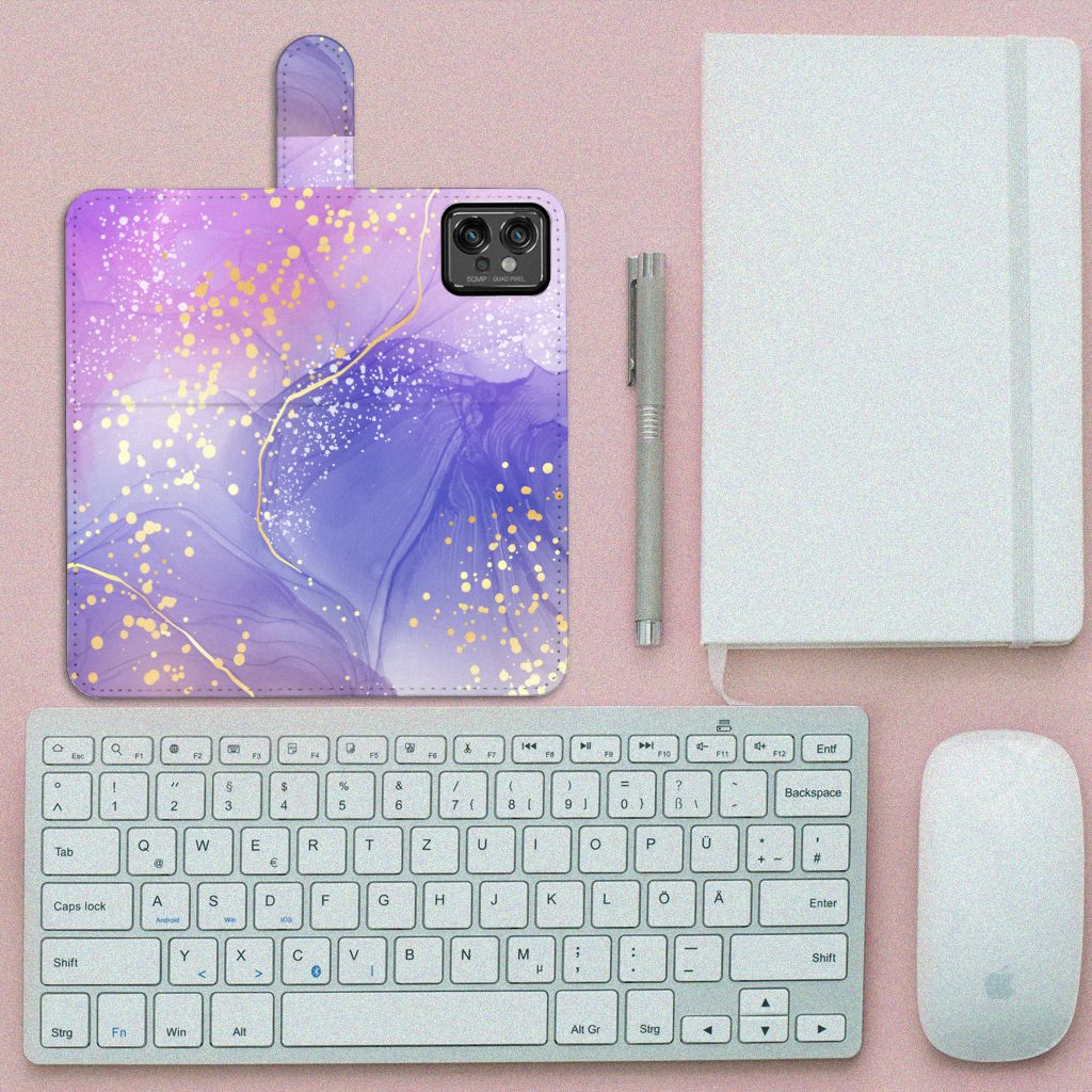 Wauw! Hoe mooi is dit watercolor hoesje in het paars? Super mooi toch! Wij garanderen jou 100% dat jouw Motorola Moto G32 opvalt! Dit design wordt geprint op een Hoesje waarin je drie pasjes kwijt kunt. Het hoesje wordt afgesloten met een sluit lipje, waardoor jouw telefoon altijd goed beschermd is. Bescherm je Motorola Moto G32 vandaag nog met dit prachtige watercolor paars hoesje!
