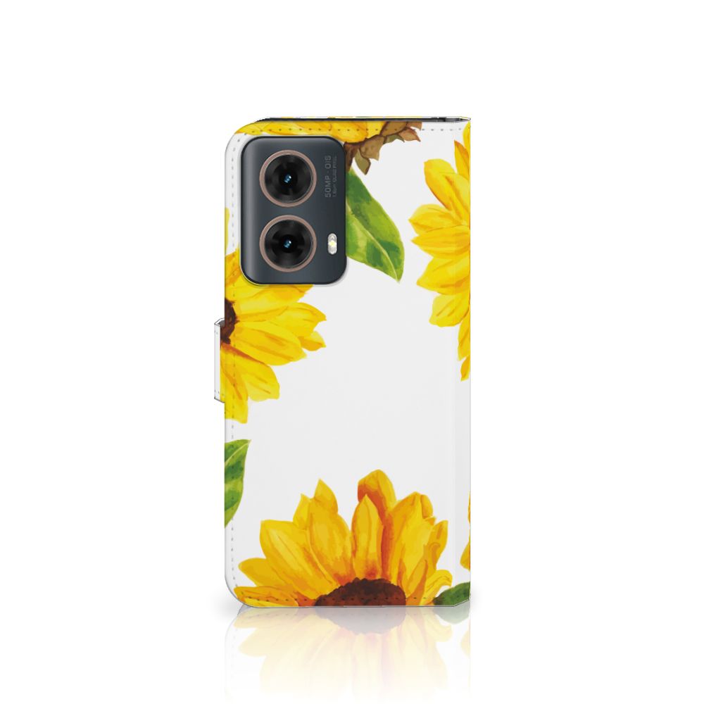 Een zonnebloem is niet alleen mooi, maar ook nog eens slim. Wist je dat de bloem draait naar de kant waar de zon schijnt? Daarom staat de zonnebloem voor veel mensen symbool voor de zomer. Wat ons betreft schijnt de zon altijd met dit mooie zonnebloemen hoesje voor jouw Motorola Moto G85. Dit zonnige zonnebloemen design wordt geprint op een Hoesje waarin je drie pasjes kwijt kunt. Het hoesje wordt afgesloten met een sluit lipje, waardoor jouw telefoon altijd goed beschermd is. Bestel vandaag nog dit Zonnebloemen design hoesje voor je smartphone.
