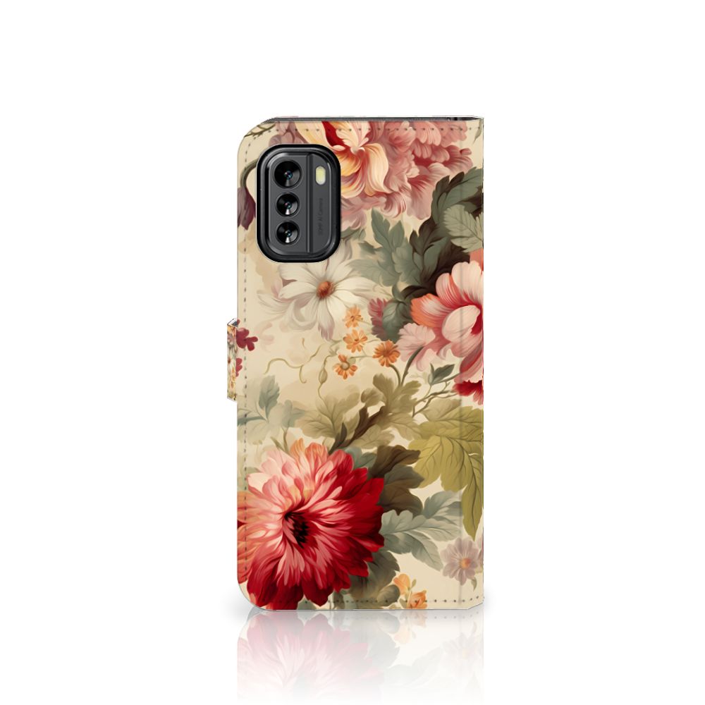 Wij (vrouwen) krijgen geen genoeg van chocolade, schoenen en bloemen. Daarom mag dit prachtige bloemen hoesje zeker niet ontbreken in onze collectie design hoesjes. Wij krijgen hier romantische vibes van, jij ook? Dit design wordt geprint op een Hoesje speciaal op maat gemaakt voor de Nokia G60. In dit hoesje kun je drie pasjes kwijt, super handig toch? Het hoesje wordt afgesloten met een sluit lipje, waardoor jouw telefoon altijd goed beschermd is. Bescherm je Nokia G60 vandaag nog dit romantische bloemen hoesje!
