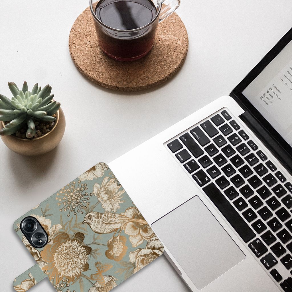 Ook zo gek op bloemen? Wij kunnen er in ieder geval geen genoeg van krijgen en daarom breiden wij onze collectie design hoesjes uit met dit Vintage Bird Flowers hoesje. Dit design geeft jouw OPPO A58 4G een chique uitstraling, vind je ook niet? Dit design wordt geprint op een Hoesje waarin je drie pasjes kwijt kunt. Het hoesje wordt afgesloten met een sluit lipje, waardoor jouw telefoon altijd goed beschermd is. Bescherm vandaag nog je smartphone met dit prachtige Vintage Bird Flowers design hoesje!