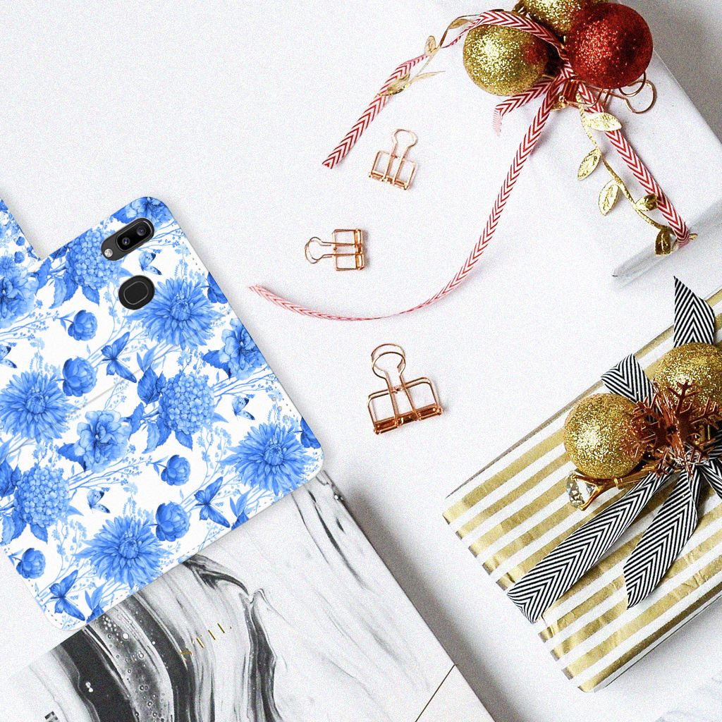 Wist je dat de meest verkochte hoesjes bij B2C Telecom degene zijn met bloemen erop? Vandaar dat wij dit prachtige design met blauwe bloemen toevoegen aan onze collectie. Het is eigenlijk gewoon mooi Delftsblauw, maar dan op een telefoonhoesje! Dit design wordt geprint op een Hoesje speciaal op maat gemaakt voor de Samsung Galaxy A30. In dit hoesje kun je drie pasjes kwijt, super handig toch? Het hoesje wordt afgesloten met een sluit lipje, waardoor jouw telefoon altijd goed beschermd is. Bescherm je Samsung Galaxy A30 vandaag nog met dit prachtige blauwe bloemen hoesje!