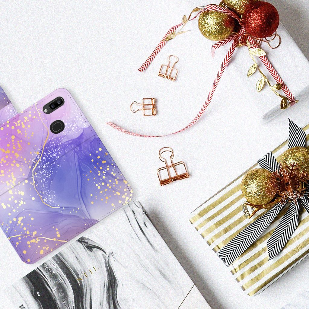 Wauw! Hoe mooi is dit watercolor hoesje in het paars? Super mooi toch! Wij garanderen jou 100% dat jouw Samsung Galaxy A30 opvalt! Dit design wordt geprint op een Hoesje waarin je drie pasjes kwijt kunt. Het hoesje wordt afgesloten met een sluit lipje, waardoor jouw telefoon altijd goed beschermd is. Bescherm je Samsung Galaxy A30 vandaag nog met dit prachtige watercolor paars hoesje!