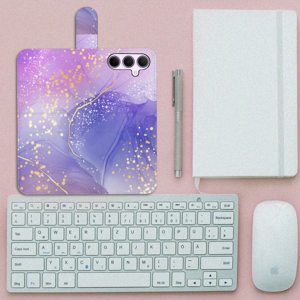 Wauw! Hoe mooi is dit watercolor hoesje in het paars? Super mooi toch! Wij garanderen jou 100% dat jouw Samsung Galaxy A35 opvalt! Dit design wordt geprint op een Hoesje waarin je drie pasjes kwijt kunt. Het hoesje wordt afgesloten met een sluit lipje, waardoor jouw telefoon altijd goed beschermd is. Bescherm je Samsung Galaxy A35 vandaag nog met dit prachtige watercolor paars hoesje!