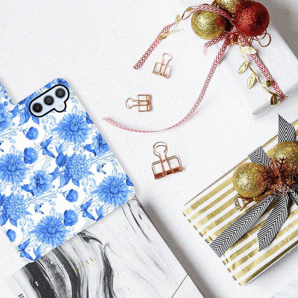 Wist je dat de meest verkochte hoesjes bij B2C Telecom degene zijn met bloemen erop? Vandaar dat wij dit prachtige design met blauwe bloemen toevoegen aan onze collectie. Het is eigenlijk gewoon mooi Delftsblauw, maar dan op een telefoonhoesje! Dit design wordt geprint op een Hoesje speciaal op maat gemaakt voor de Samsung Galaxy A54 5G. In dit hoesje kun je drie pasjes kwijt, super handig toch? Het hoesje wordt afgesloten met een sluit lipje, waardoor jouw telefoon altijd goed beschermd is. Bescherm je Samsung Galaxy A54 5G vandaag nog met dit prachtige blauwe bloemen hoesje!