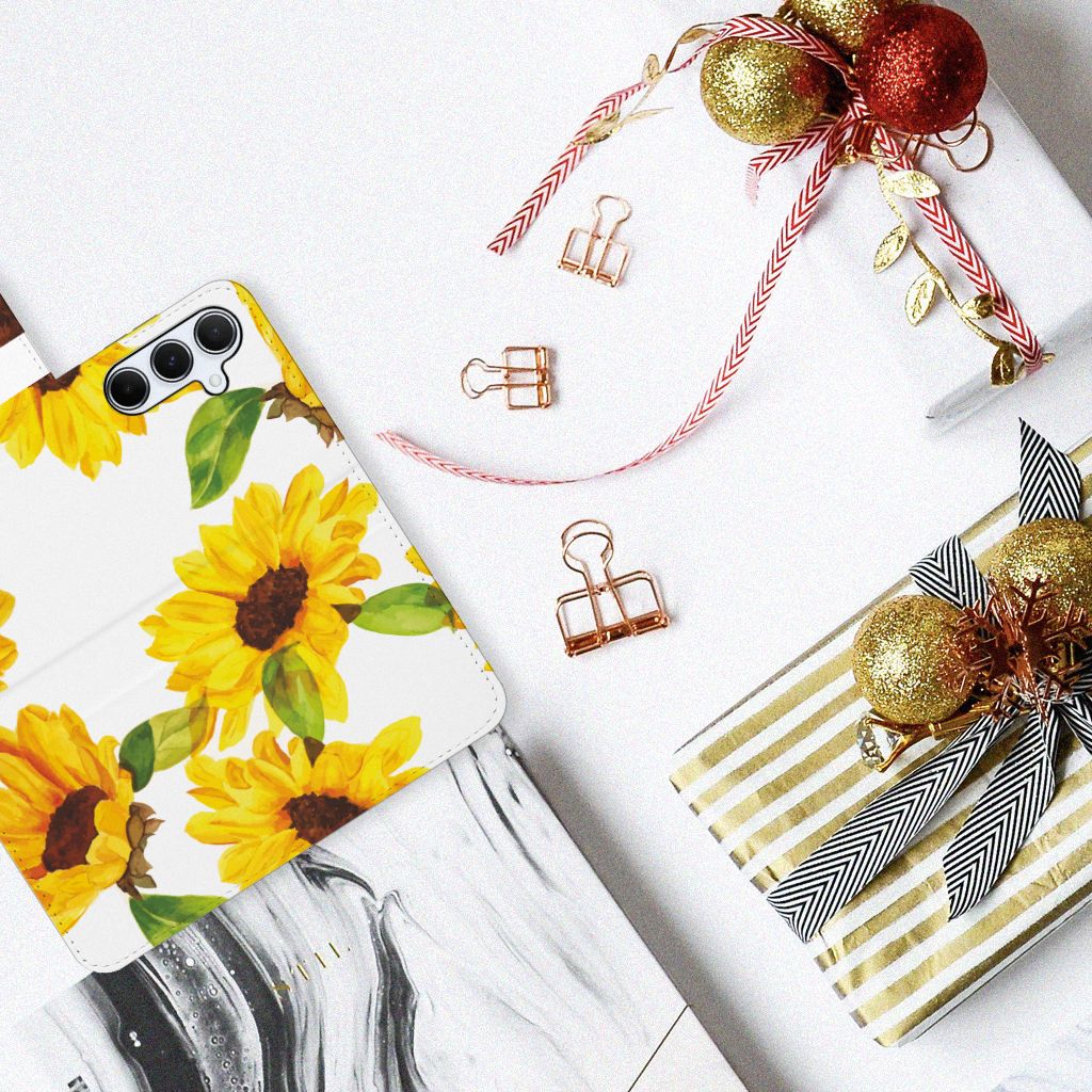 Een zonnebloem is niet alleen mooi, maar ook nog eens slim. Wist je dat de bloem draait naar de kant waar de zon schijnt? Daarom staat de zonnebloem voor veel mensen symbool voor de zomer. Wat ons betreft schijnt de zon altijd met dit mooie zonnebloemen hoesje voor jouw Samsung Galaxy A55. Dit zonnige zonnebloemen design wordt geprint op een Hoesje waarin je drie pasjes kwijt kunt. Het hoesje wordt afgesloten met een sluit lipje, waardoor jouw telefoon altijd goed beschermd is. Bestel vandaag nog dit Zonnebloemen design hoesje voor je smartphone.