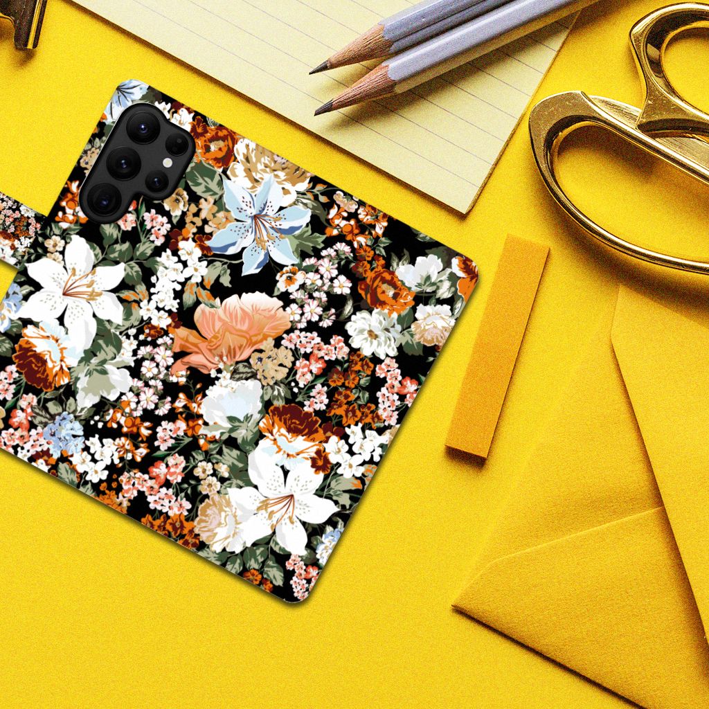 Ben jij ook zo gek op bloemen? Wij in ieder geval wel! Dit hoesje met verschillende soorten bloemen voor je Samsung Galaxy S23 Ultra maken jouw dag helemaal goed. Je hoeft ze nooit water te geven en ze staan er altijd prachtig bij ;-). Dit Dark Flowers design wordt geprint op een Hoesje waarin je drie pasjes kwijt kunt. Het hoesje wordt afgesloten met een sluit lipje, waardoor jouw telefoon altijd goed beschermd is. Bescherm je Samsung Galaxy S23 Ultra vandaag nog met dit Dark Flowers design hoesje!
