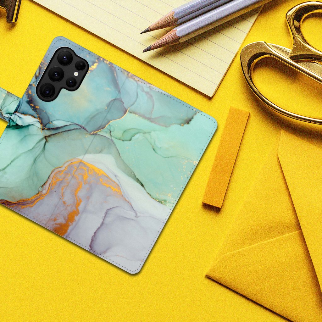 Bookcase voor Samsung Galaxy S23 Ultra Marmer Groen