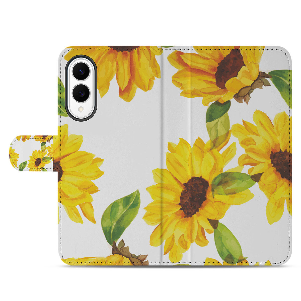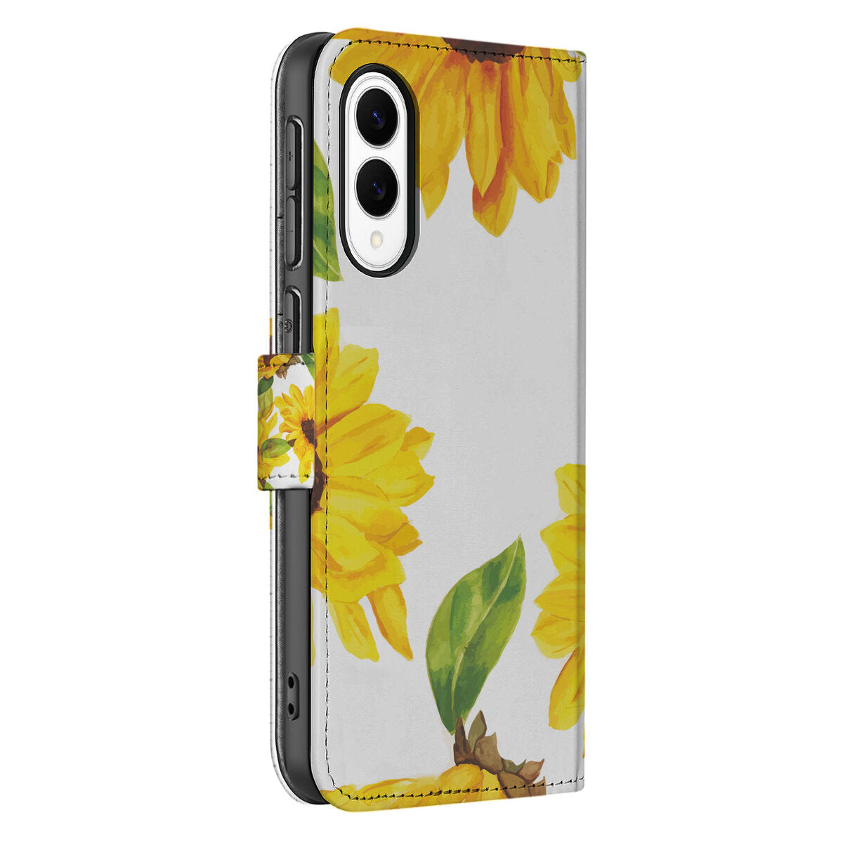 Bescherm je Samsung Galaxy S25 Edge in stijl met dit book case hoesje. Het unieke Zonnebloemen-design maakt van je telefoon een persoonlijk accessoire.