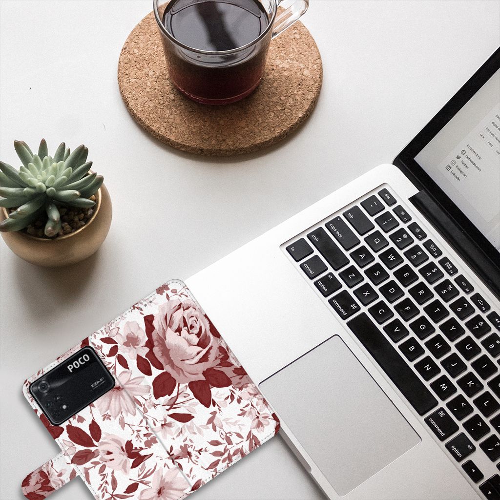 Hoesje Xiaomi Poco X4 Pro 5G met ruimte voor 3 pasjes Watercolor Flowers