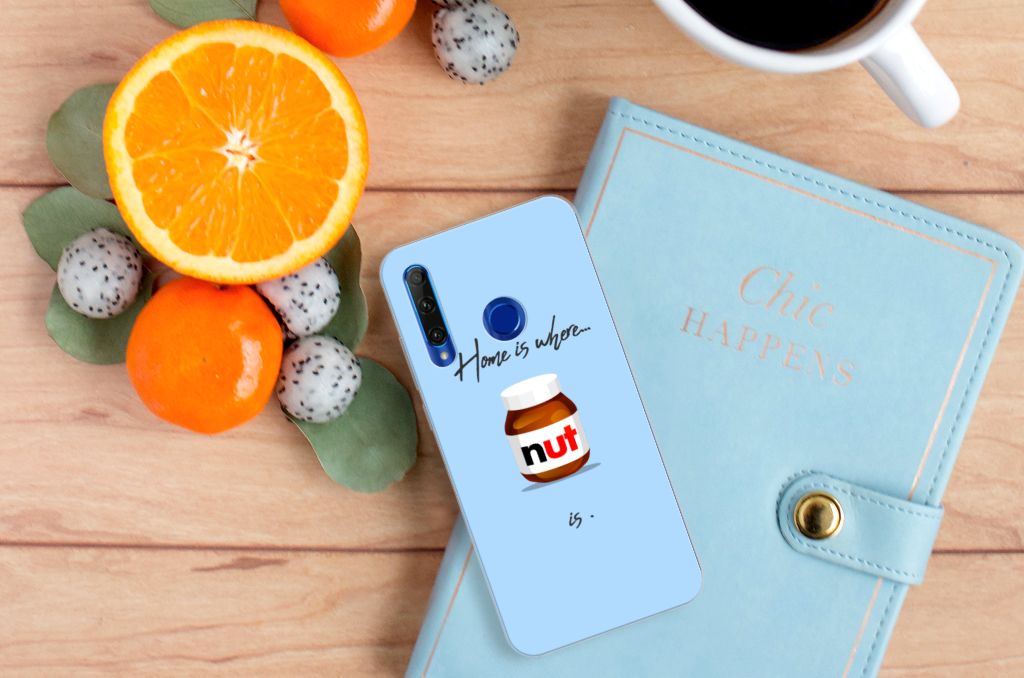 Ben je liefhebber van chocoladepasta, dan is dit het perfecte Honor 20 Lite Siliconen Case voor jou. De chocoladepasta is enorm populair, dus is het niet zo heel gek dat je een ‘Nut Home’ tpu case in een blauwe kleur aantreft in ons assortiment design hoesjes met illustraties. Dit tpu hoesje is zeer flexibel en past altijd in je broekzak. Alleen de bovenkant van dit hoesje wordt door ons bedrukt in blauwe kleur met de pasta, op zeer duurzame manier. Mensen die houden van de bekendste pasta van het moment, kiezen voor deze blauwe tpu case. Er staan geen illustraties op de zijkanten van een tpu case. Je kunt ook een eigen tekst toevoegen aan het opvallende design.