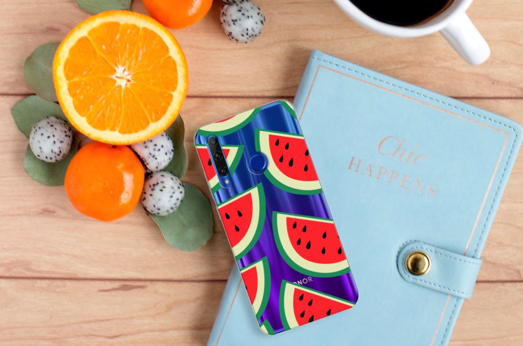 Watermeloenen zijn uitstekende dorstlessers, misschien dat je daarom juist in de zomermaanden extra enthousiast raakt van dit design hoesje Watermelons. Jij blijft gezond als je zo nu en dan een watermeloen neemt, jouw smartphone blijft in tact als je er deze Honor 20 Lite Siliconen Case omheen doet. Deze tpu case wordt alleen aan de bovenkant bedrukt met watermeloenen is zeer flexibel. De randen van het hoesje blijven transparant. Je kunt ook kiezen voor andere soorten fruit op je hoesje. Kijk maar eens naar onze andere design hoesjes op onze website.