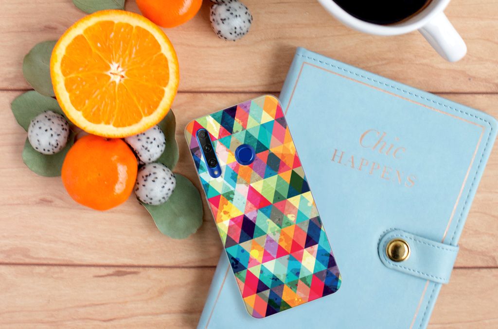 Van dit geruite design hoesje moet je een beetje houden. Maar als je het eenmaal in bezit hebt, ben je waarschijnlijk binnen no time verkocht. Het design heeft ruitjes in alle kleuren van de regenboog en door de grijze achtergrond kan het hoesje enigszins druk overkomen. Maar tegelijkertijd is dit de kracht van het hoesje. Met dit design hoesje Geruit zal je namelijk heel erg opvallen. Dit is voor veel vooral jonge smartphone gebruikers een belangrijk voordeel. Deze geruite print staat op een Honor 20 Lite TPU bumper. Dit zeer flexibele smartphone hoesje heeft alle nodige uitsparingen en past altijd in je broekzak. De case is aan de bovenkant bedrukt, de randen blijven transparant.