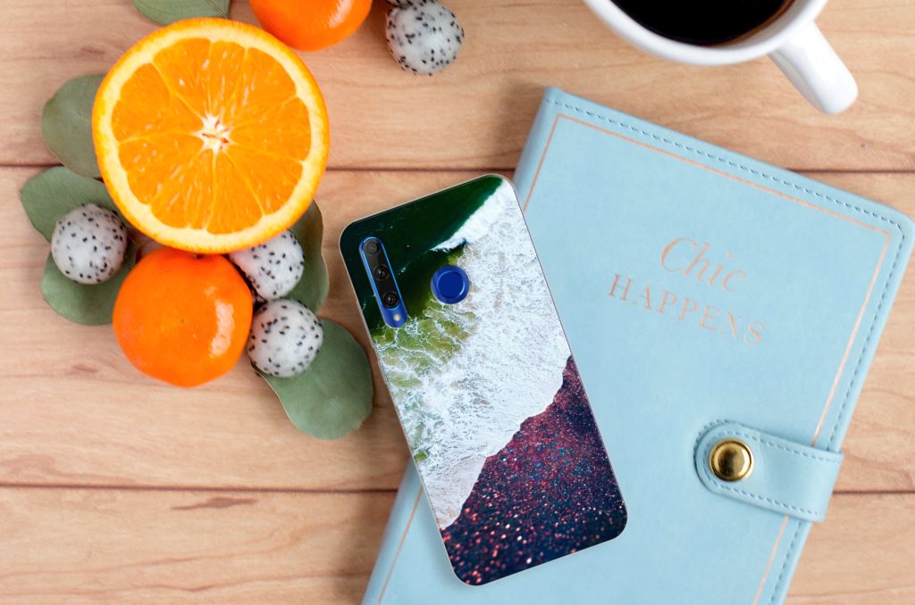 Ben je een beetje een artistiek type? Dan kan je wel eens enthousiast raken van dit smartphonehoesje. ‘Sea in Space’, zo noemt onze grafisch designer dit ontwerp. Dus mensen die van zon en zee kunnen genieten en tegelijkertijd van science fiction houden zullen deze case ongetwijfeld mooi vinden. Een beetje glitter en glamour zou je met een beetje fantasie ook nog wel kunnen ontdekken in dit design hoesje. Dit artistieke kunstwerkje is voor heel weinig geld te bestellen op onze website. Je krijgt er maximale bescherming van je Honor 20 Lite voor terug. Het design staat op een TPU Hoesje. Dit hoesje wordt alleen aan de bovenkant bedrukt en is zeer flexibel. De randen van het hoesje blijven transparant en worden niet bedrukt.