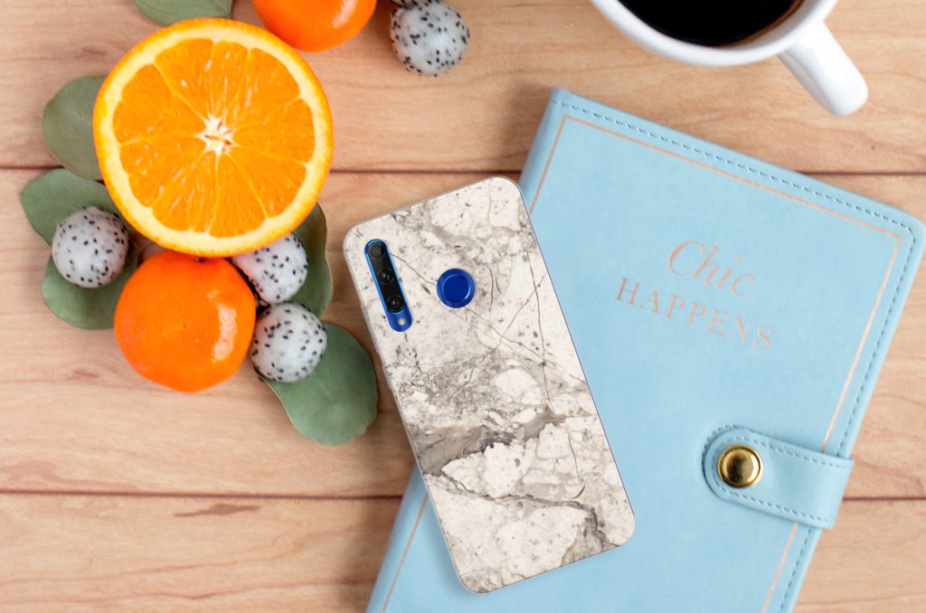 Dit design hoesje met Marmer Beige is voor de artistieke personen onder ons. De Grieken en Romeinen wisten het steen al te waarderen door het als bouw- en bekledingsmateriaal toe te passen. Naast het witte Carrara marmer met haar zacht grijze geaderde belijning zijn de diverse marmersoorten in een ruim kleurenpallet te krijgen. We hebben verschillende kleuren op design hoesjes gezet, zoals in dit geval beige marmer. Dit is een Honor 20 Lite TPU Siliconen Hoesje met marmer in beige kleur. Het marmer wordt bedrukt op de voorkant van een tpu case, die beschikt over opstaande randen aan de voorkant en goed combineert met een screenprotector. De rijkheid aan kleuren en varianties in afwerking geeft designers de vrijheid om met marmer hele mooie architectonische projecten te realiseren. Wij hebben onze designer ook veel vrijheid gegeven. Het resultaat zie je terug in deze tpu case met beige marmer, die jouw smartphone goed beschermt. De zijkanten van de case worden niet bedrukt met marmer.