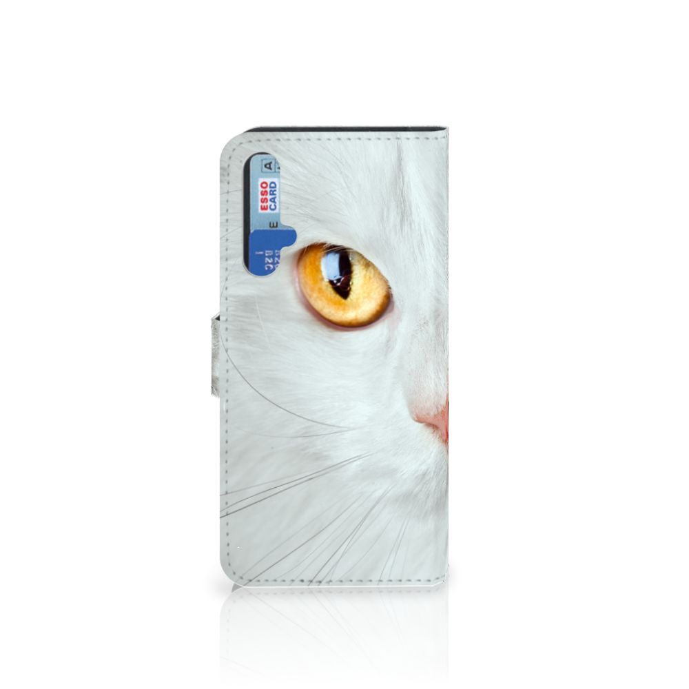 Honor 20 Telefoonhoesje met magnetisch lipje als sluiting Witte Kat